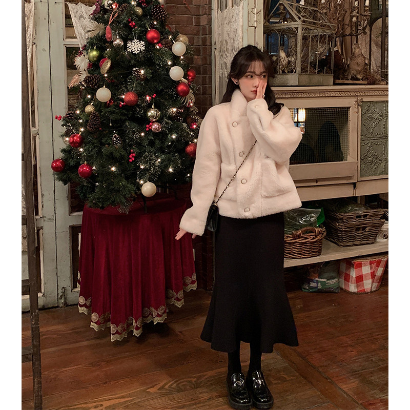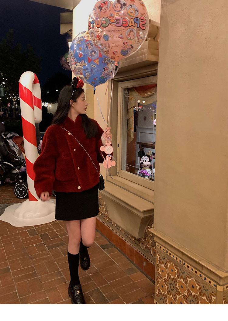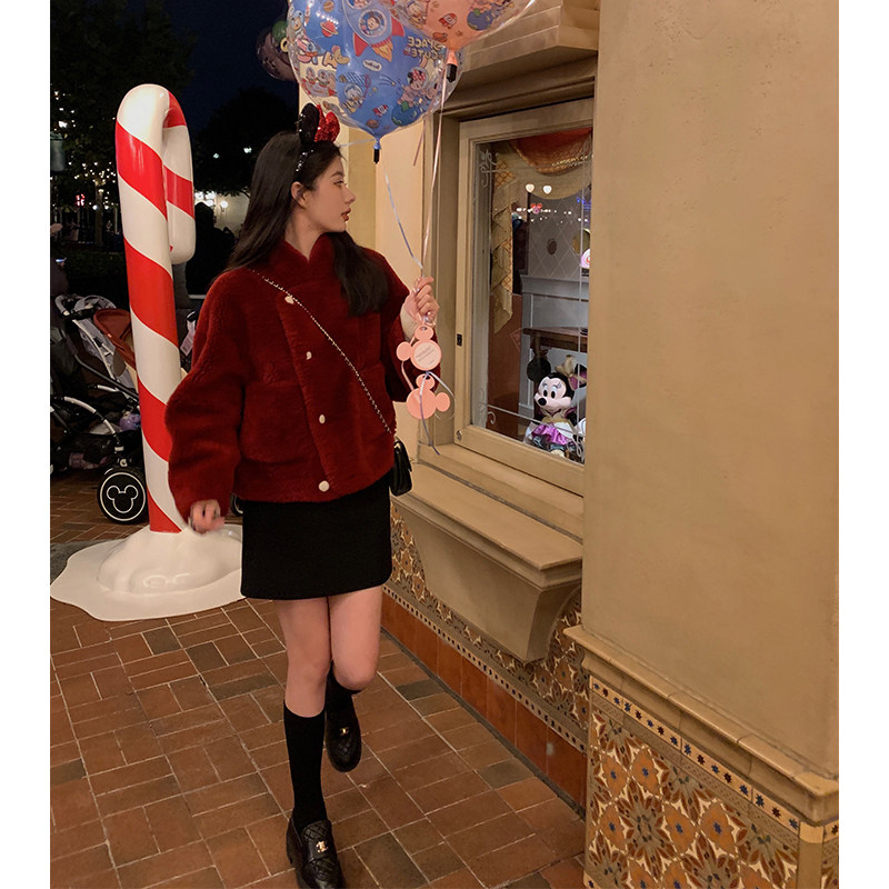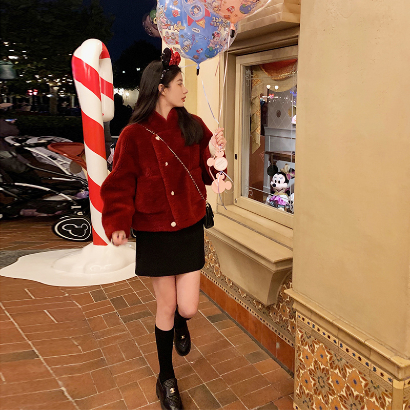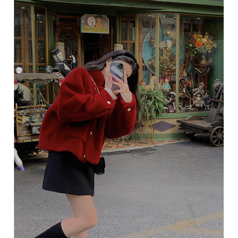 YT26273 샤넬 스타일 하이 엔드 양고기 양모 양모 코트 새 도착 해 레드 여성 패션 크리스마스스토어 가기