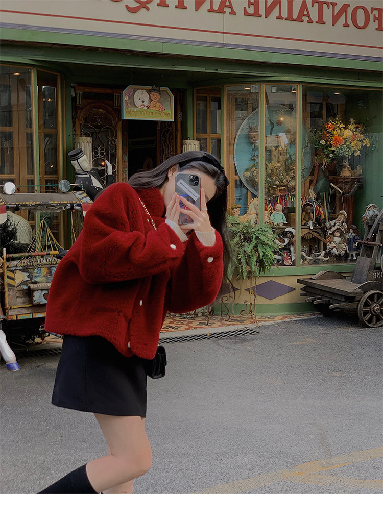 YT26273 샤넬 스타일 하이 엔드 양고기 양모 양모 코트 새 도착 해 레드 여성 패션 크리스마스