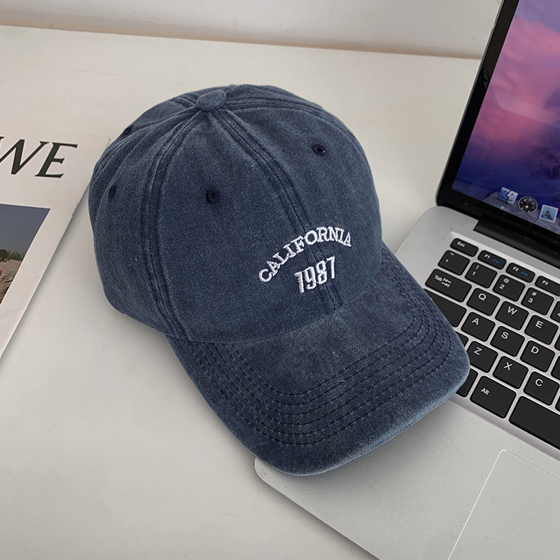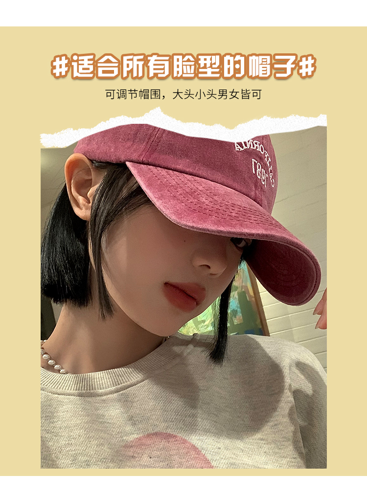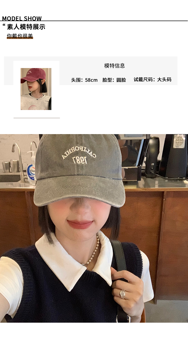미국 빈티지 야구 모자 여자의 씻어 데님 큰 머리 도자기 모자 편지 소프트 탑 와이드 챙 버건디 모자스토어 가기