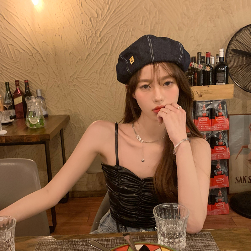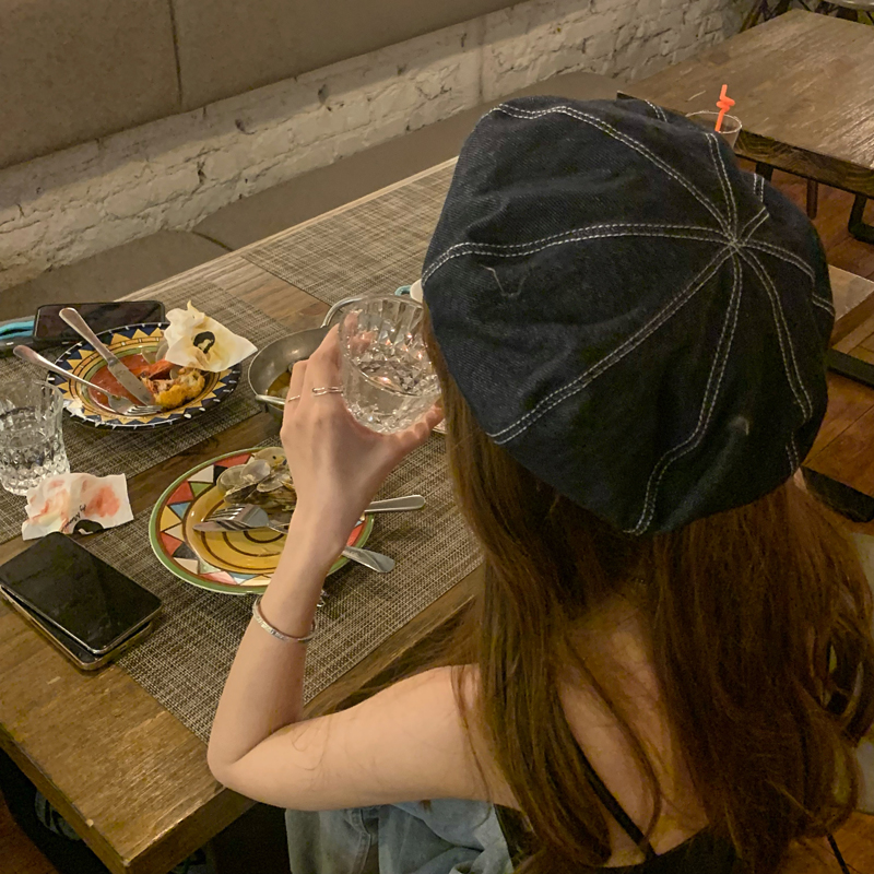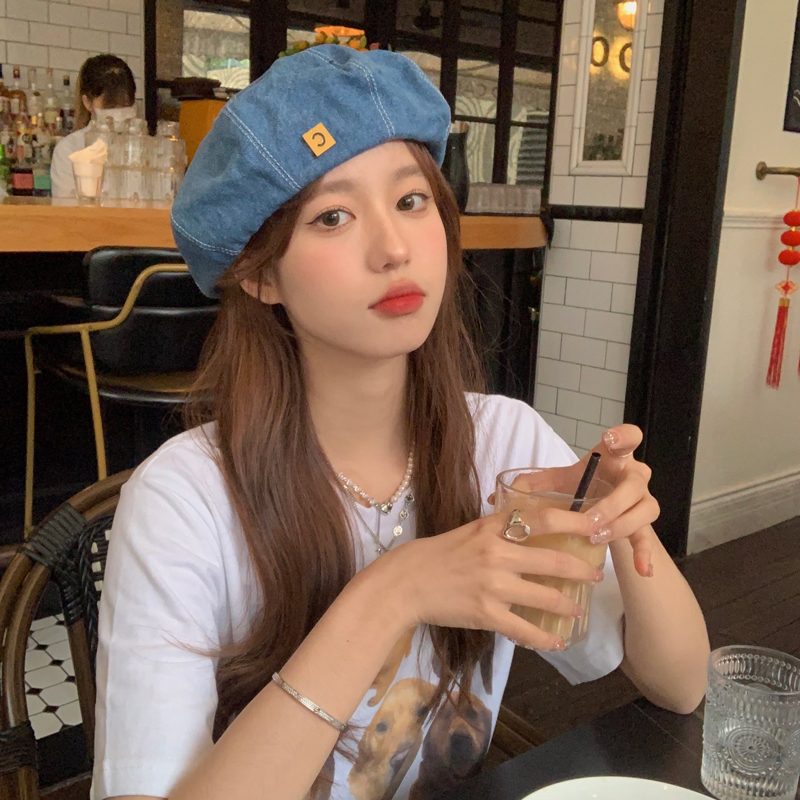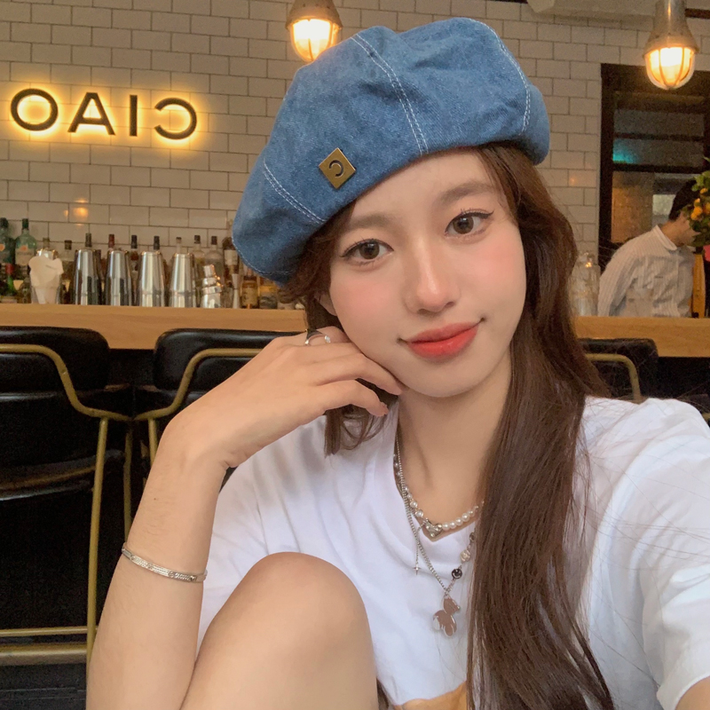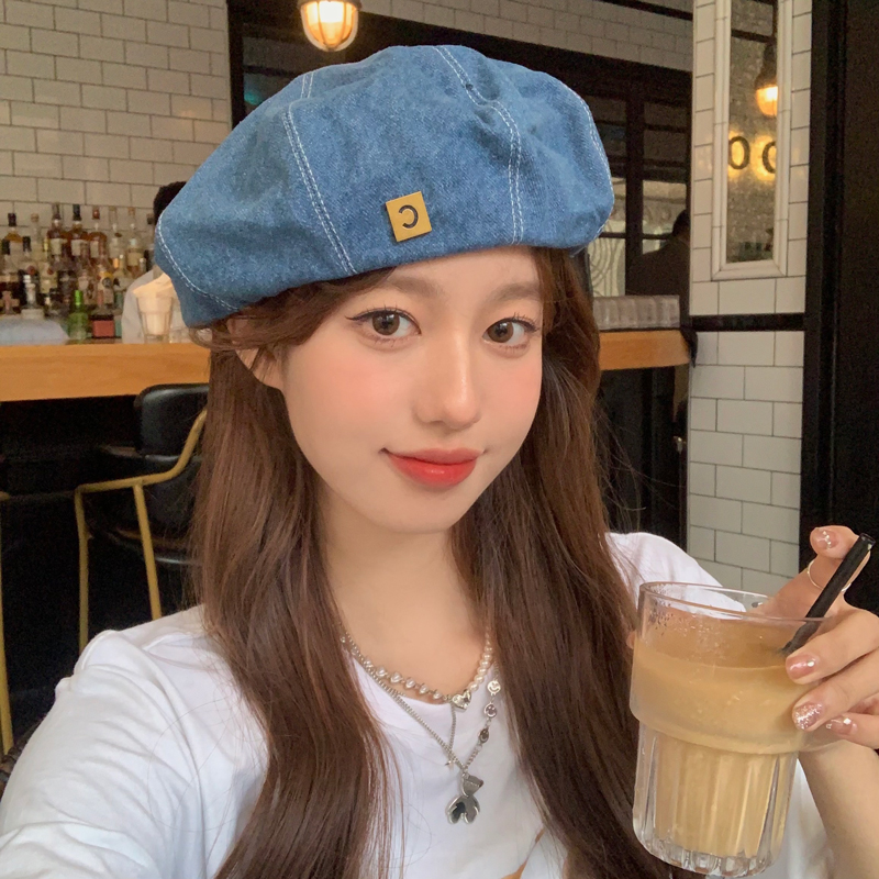 봄 카우보이 블루 베레모 여자 편지 한국어 스타일 프랑스 스타일 영국 스타일 인터넷 축하 개인 모든 경기 모자 화가의 모자스토어 가기
