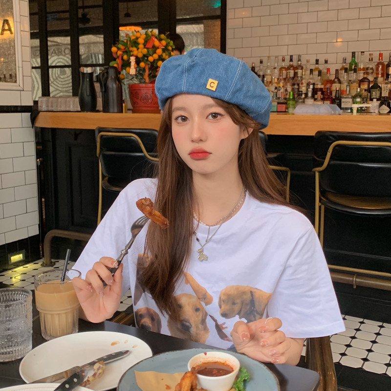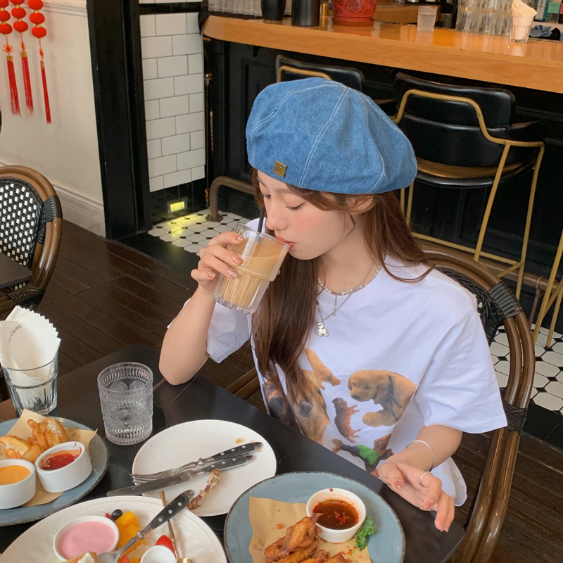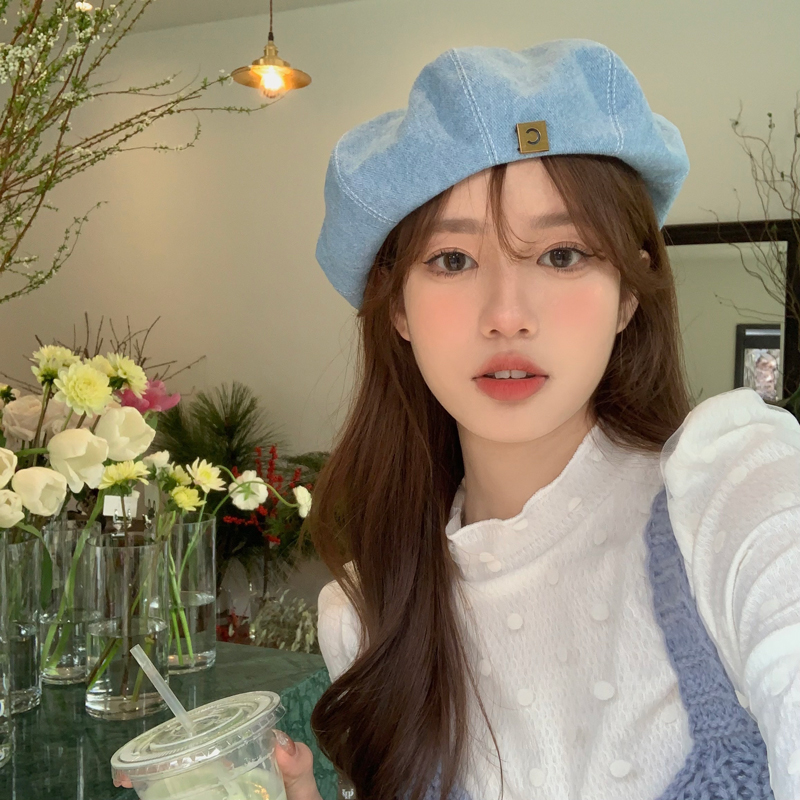 봄 카우보이 블루 베레모 여자 편지 한국어 스타일 프랑스 스타일 영국 스타일 인터넷 축하 개인 모든 경기 모자 화가의 모자