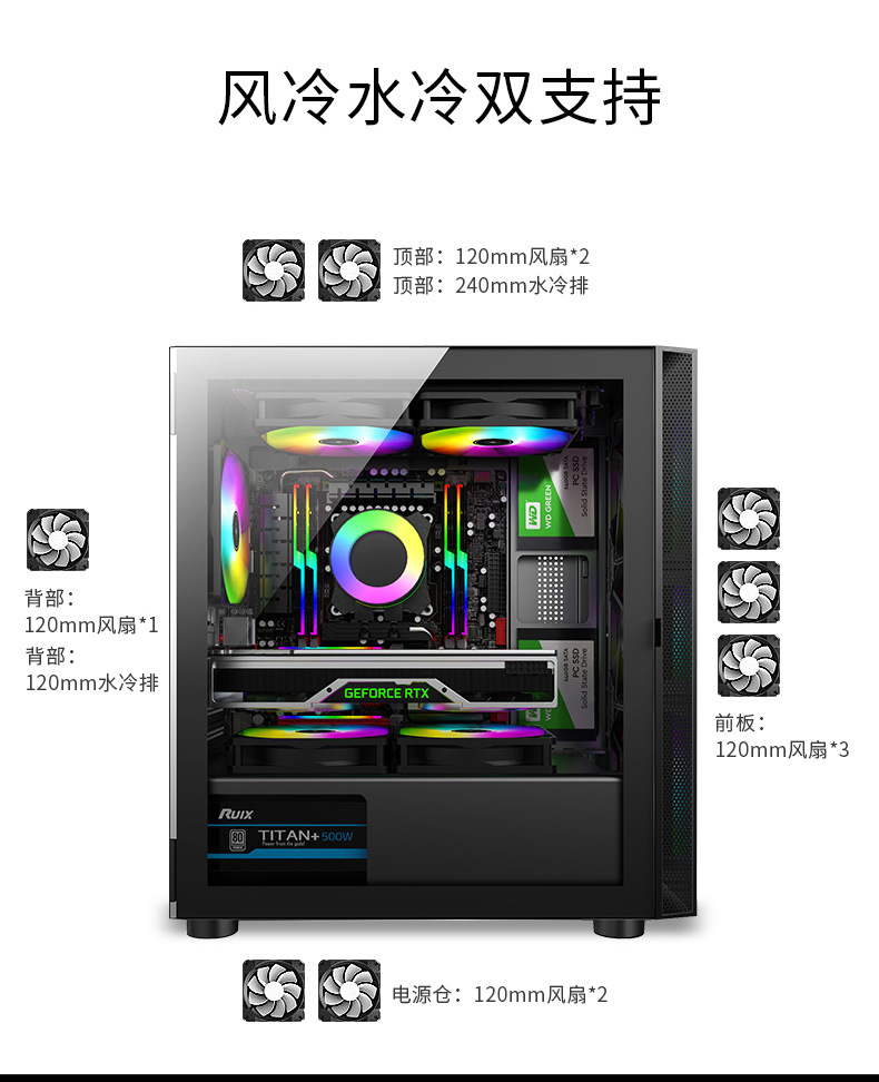 크로스 보더 데스크탑 PC 컴퓨터 메인 케이스 강화 유리 파노라마 사이드 도어 수냉식 게임 케이스