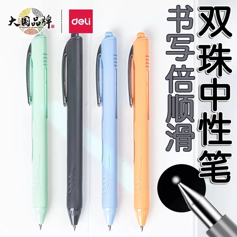 델리 더블 볼 비드 젤 펜 프레스형 하이 컬러 블랙 퀵 드라이 0.5mm 학생용 총알 워터 펜