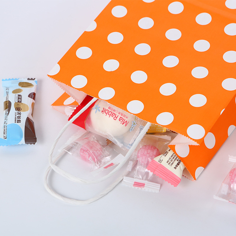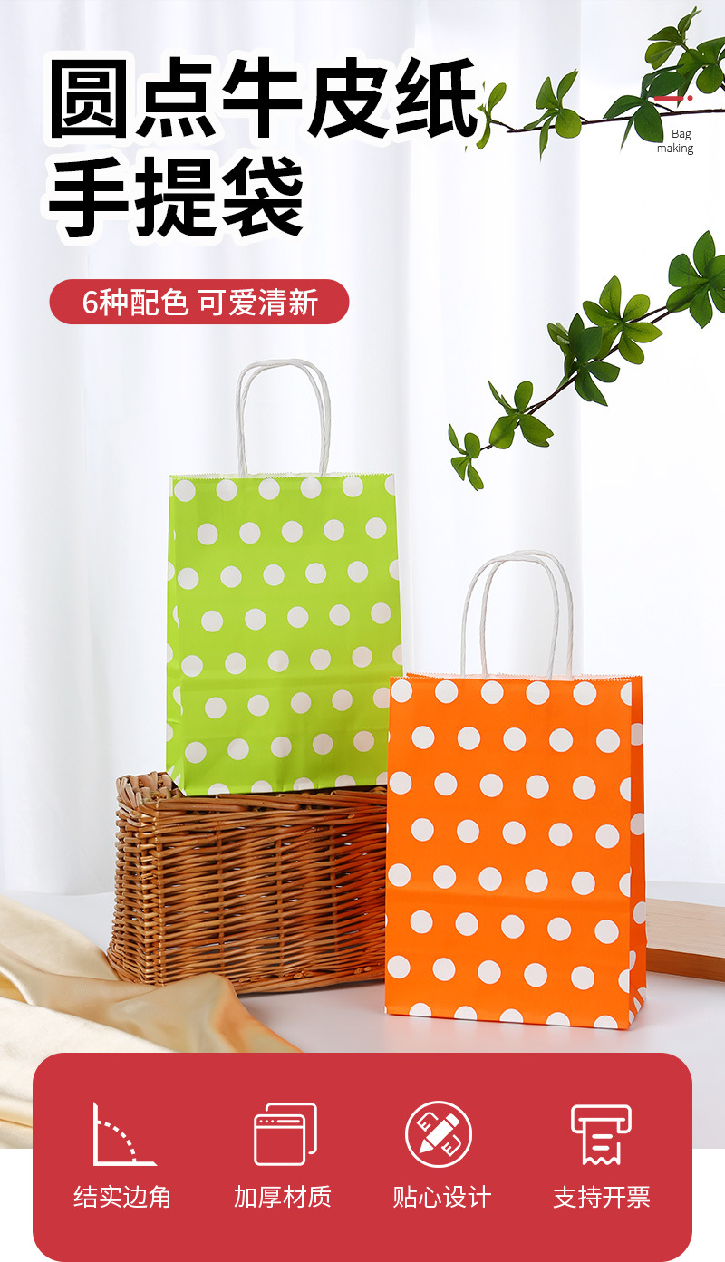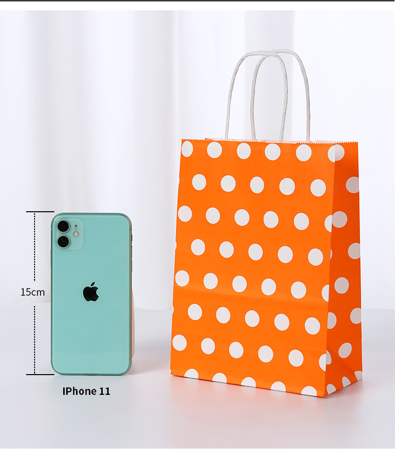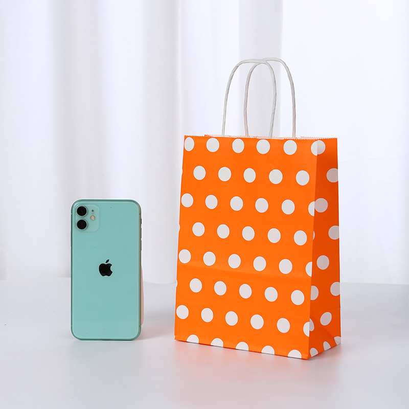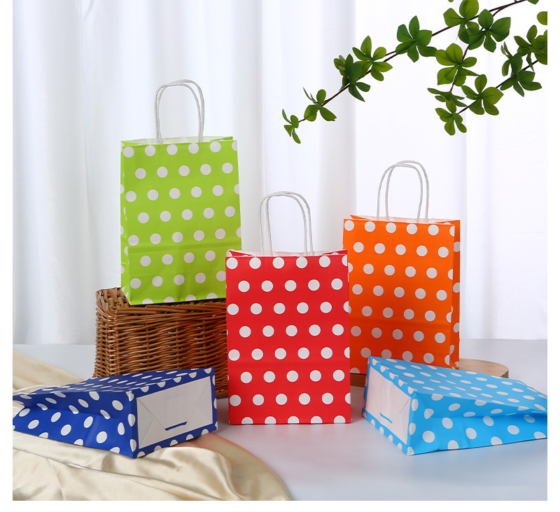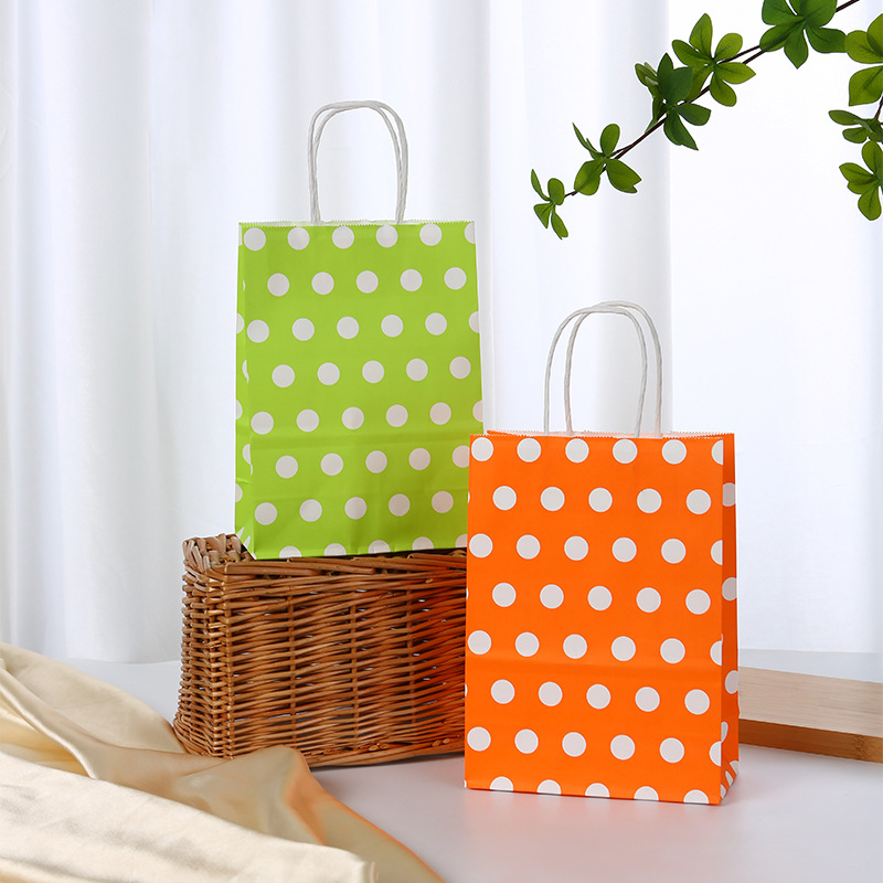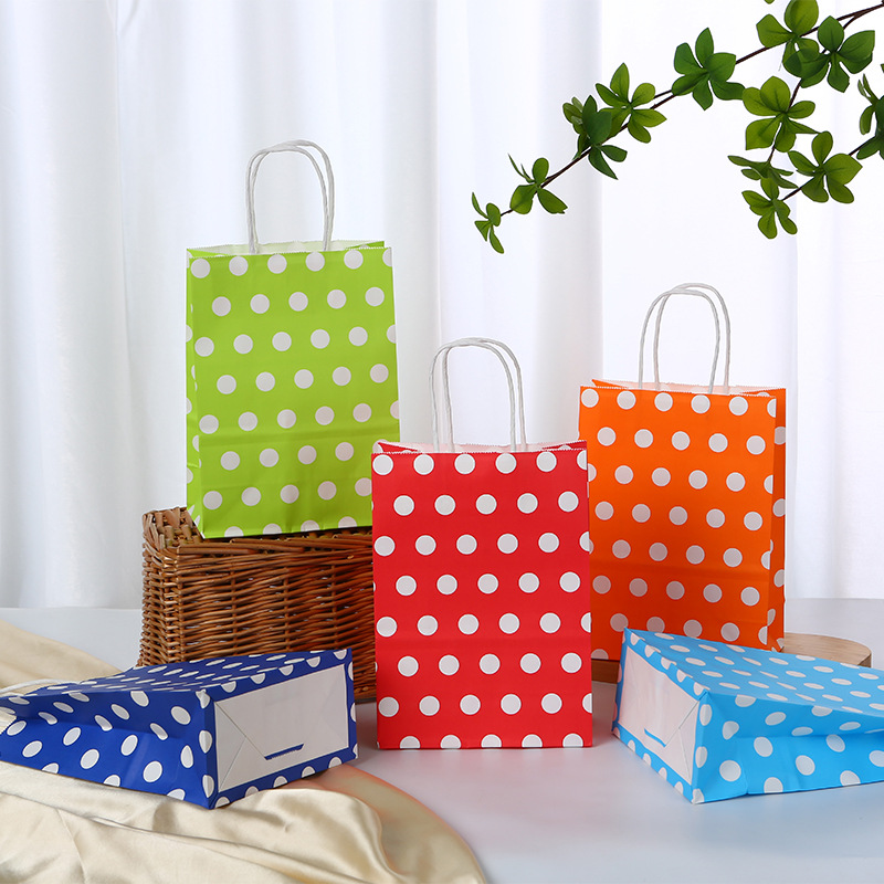 재고 도매 컬러 물방울 무늬 크래프트 종이 토트백 창조적 인 물방울 무늬 선물 가게 쇼핑 토트백스토어 가기
