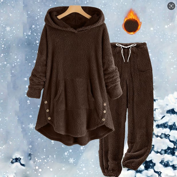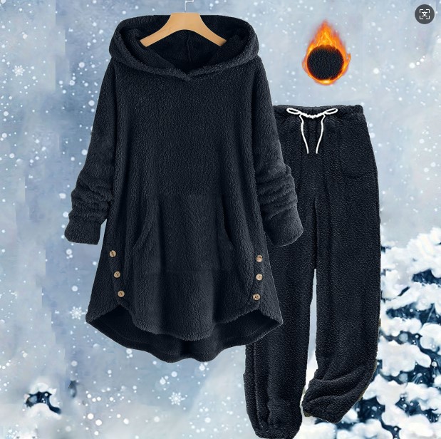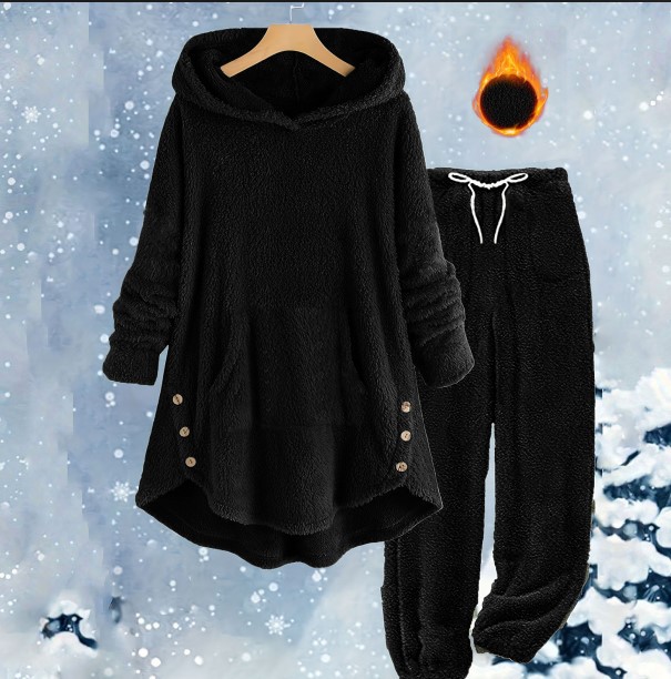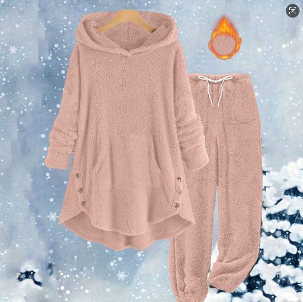 국경을 넘는 아마존 가을 겨울 신상 유럽 및 미국 스타일 캐주얼 여성복 단색 플러시 후드 긴팔 바지 세트 여성용스토어 가기