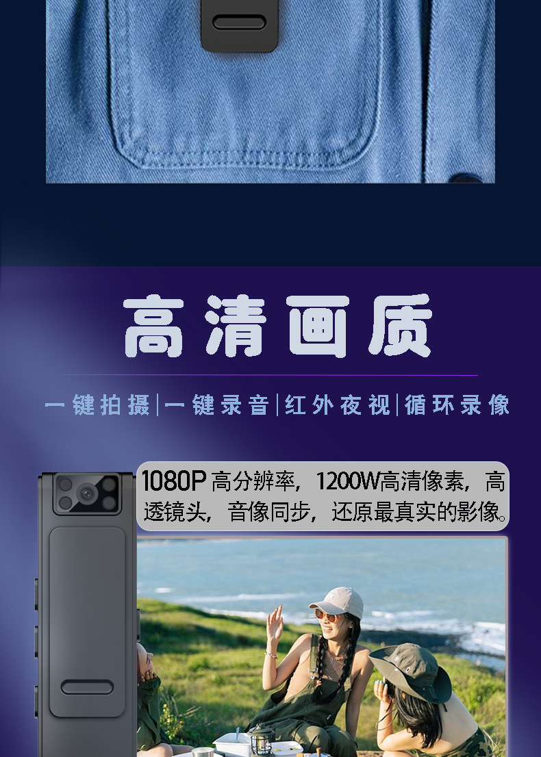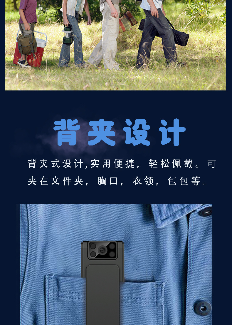 外贸款充电记录仪高清1080P 户外运动相机便携磁吸背夹摄像机