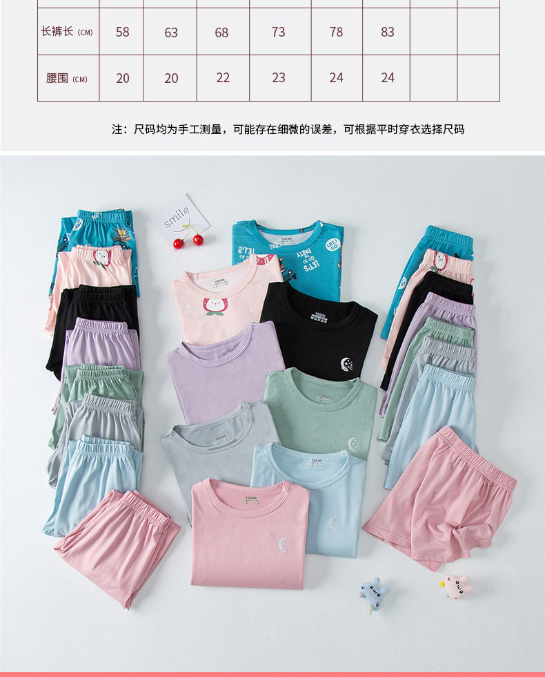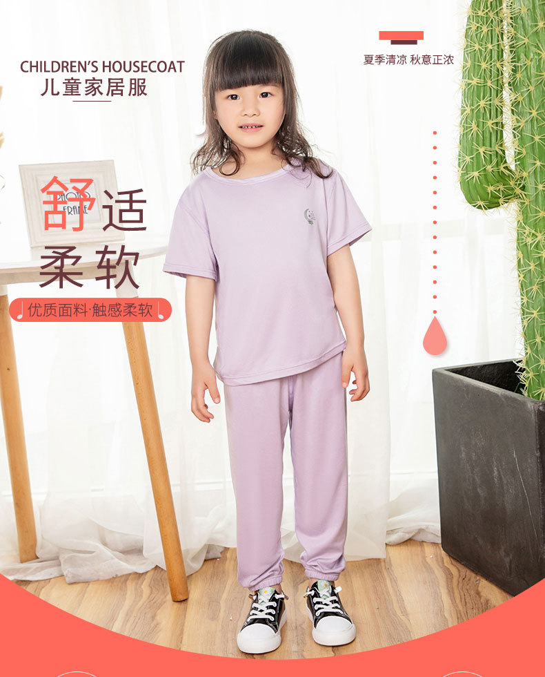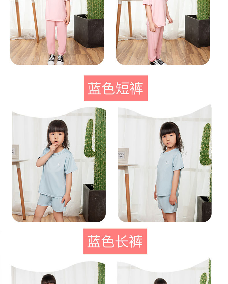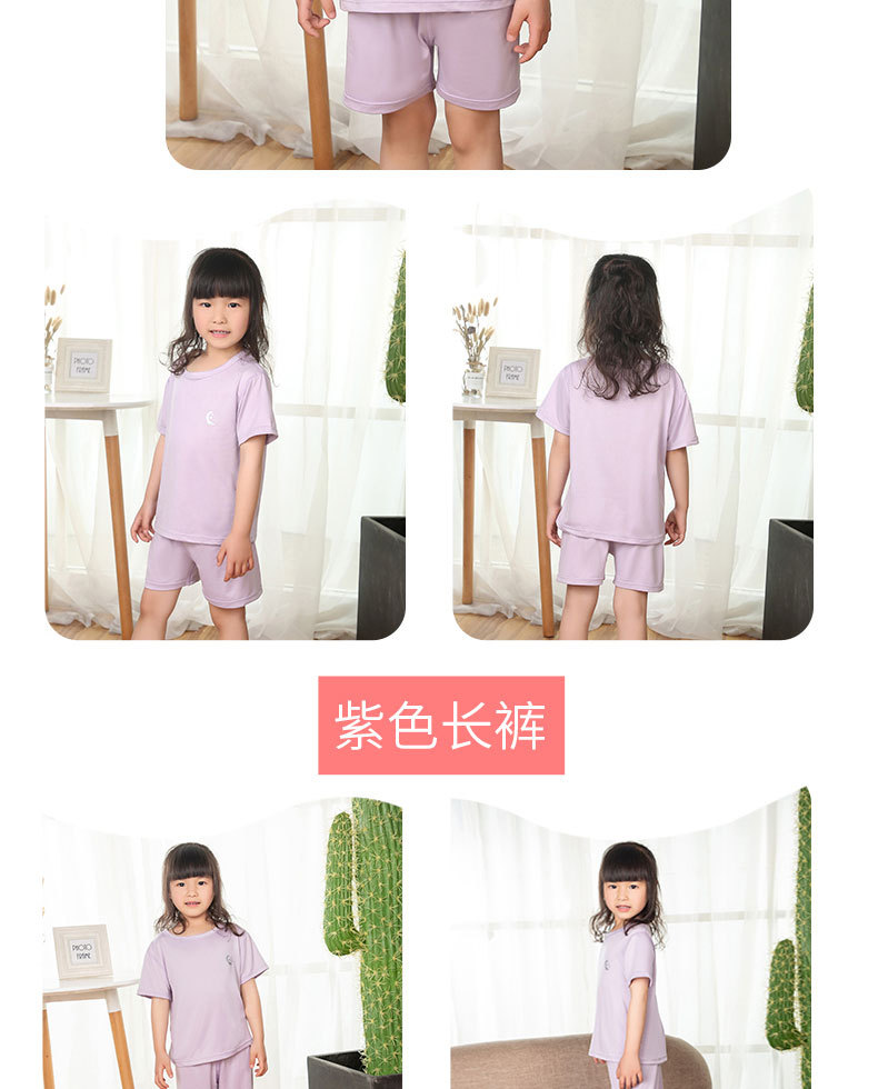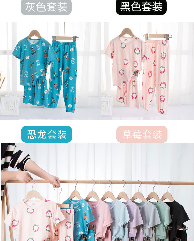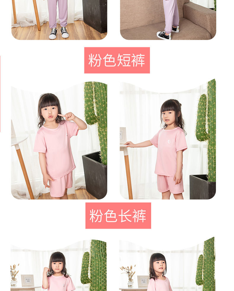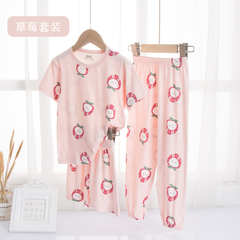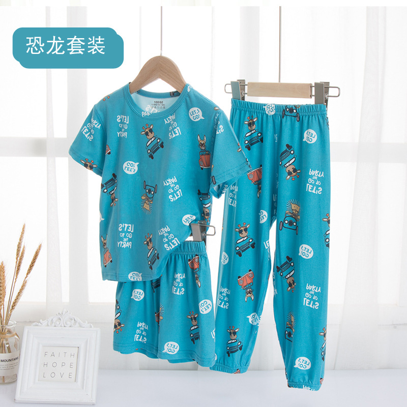 어린이 가정복 3 피스 반팔 반바지 소년 소녀 바지 에어컨 요금 어린이 얇은 잠옷 단색