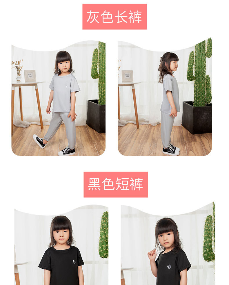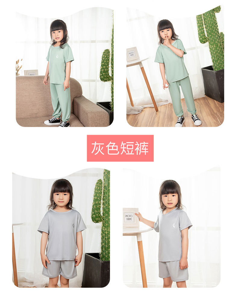 어린이 가정복 3 피스 반팔 반바지 소년 소녀 바지 에어컨 요금 어린이 얇은 잠옷 단색스토어 가기