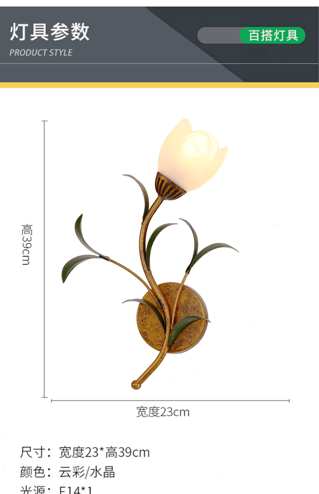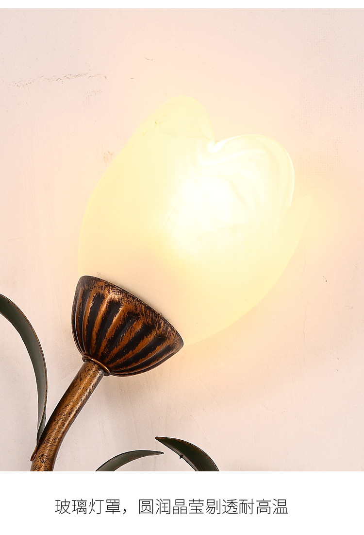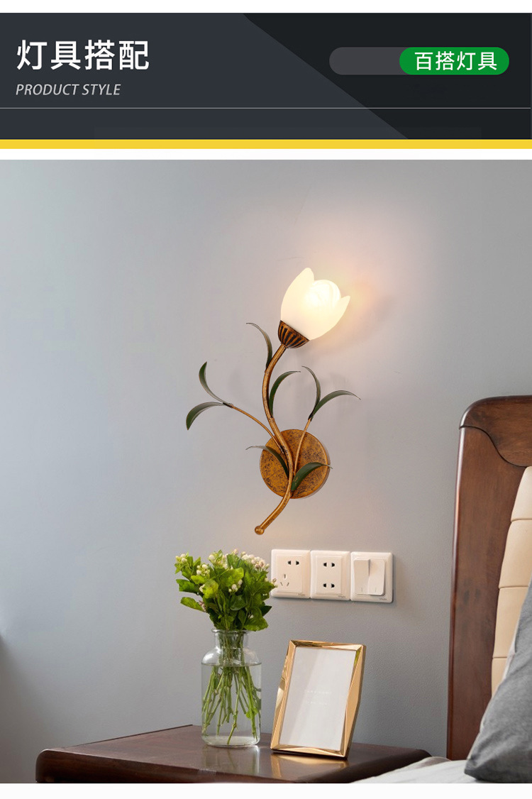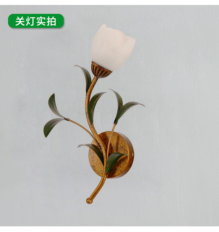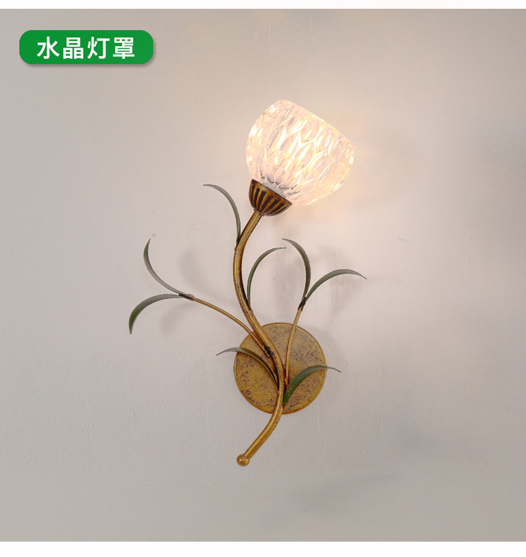 프랑스 스타일 벽 램프 거실 배경 벽 현대 간단한 미국 스타일 목가적 인 복고풍 방 꽃 침실 침대 옆 램프스토어 가기
