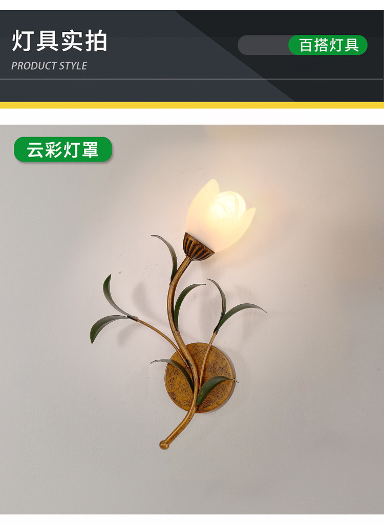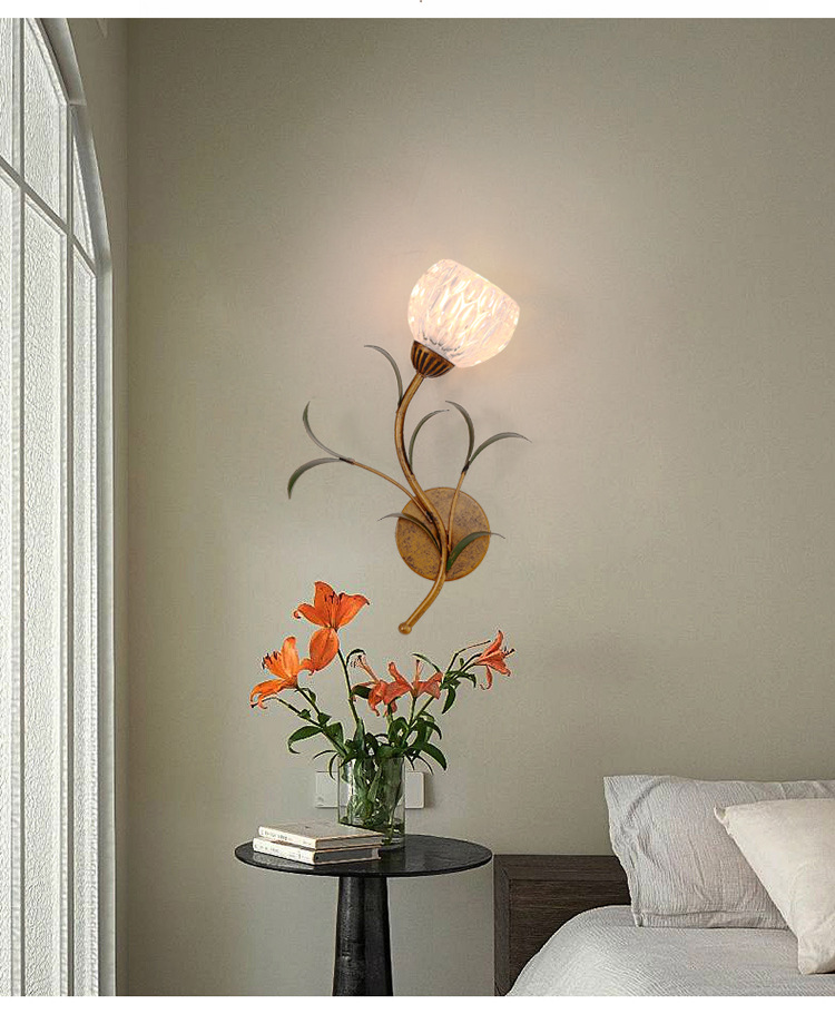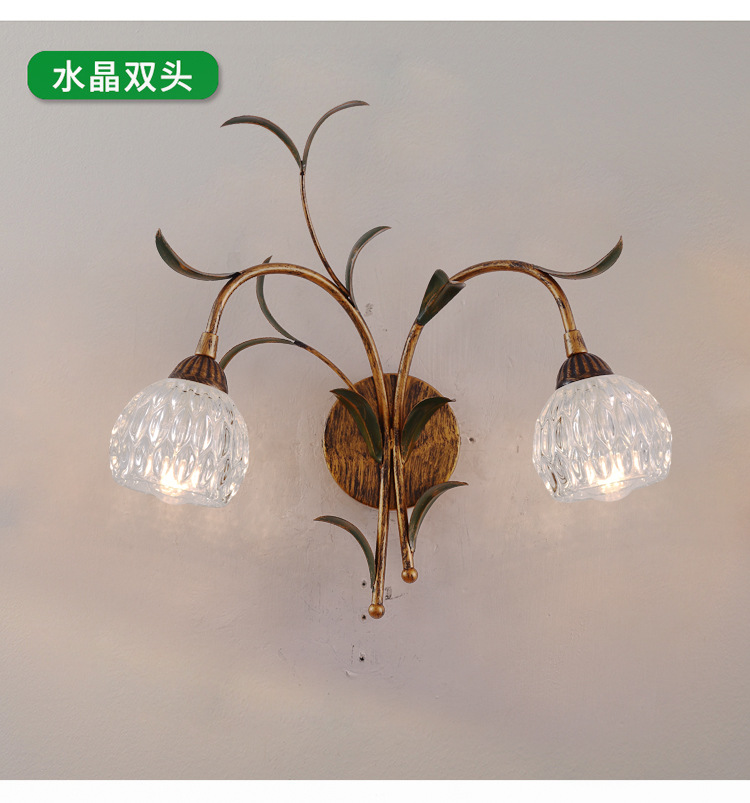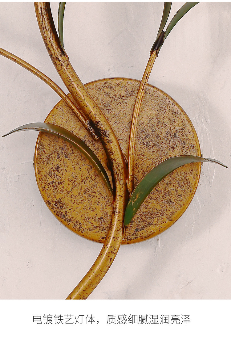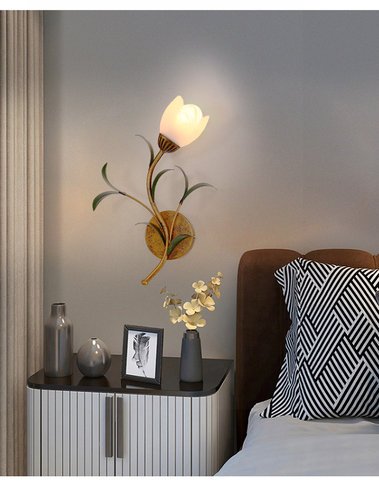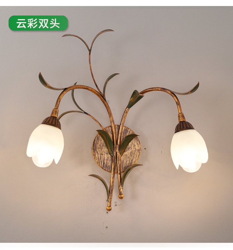 프랑스 스타일 벽 램프 거실 배경 벽 현대 간단한 미국 스타일 목가적 인 복고풍 방 꽃 침실 침대 옆 램프스토어 가기