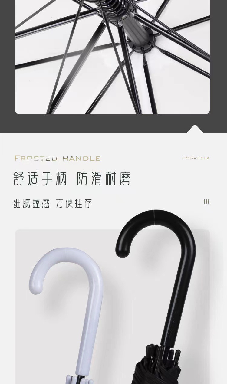 검은 우산 제조사 도매 환경 보호 우산 POE 플라스틱 투명 우산 긴 손잡이 우산 인쇄 광고 우산 소 흰색 우산