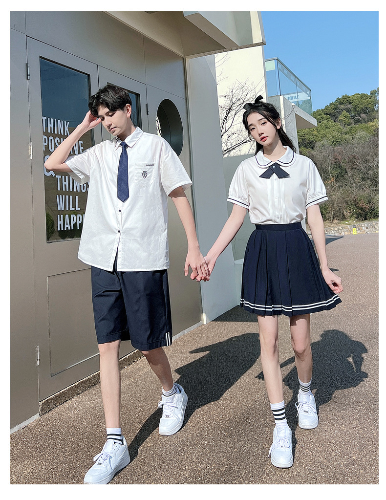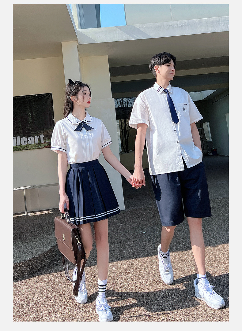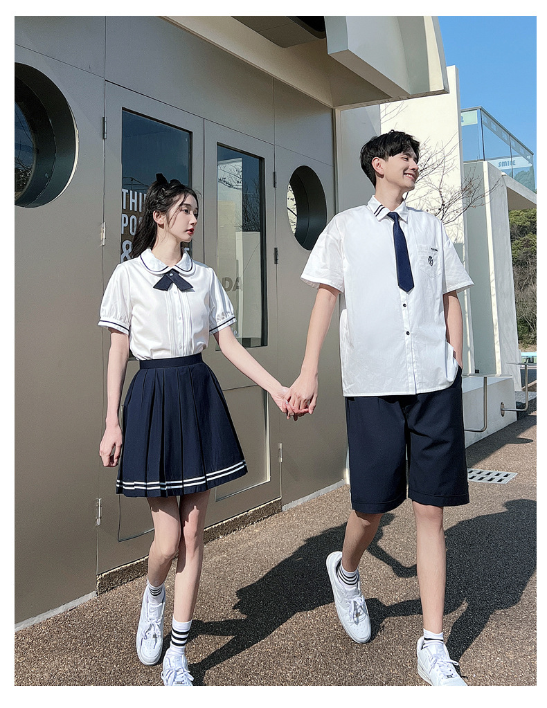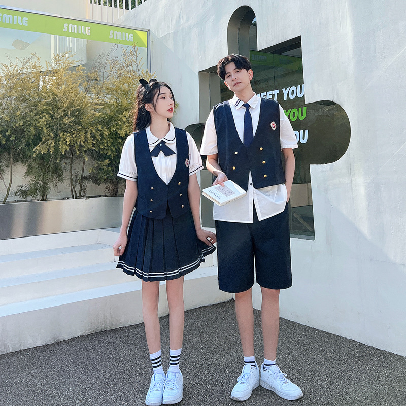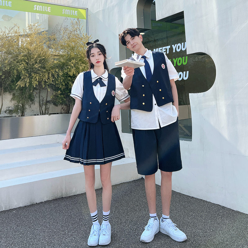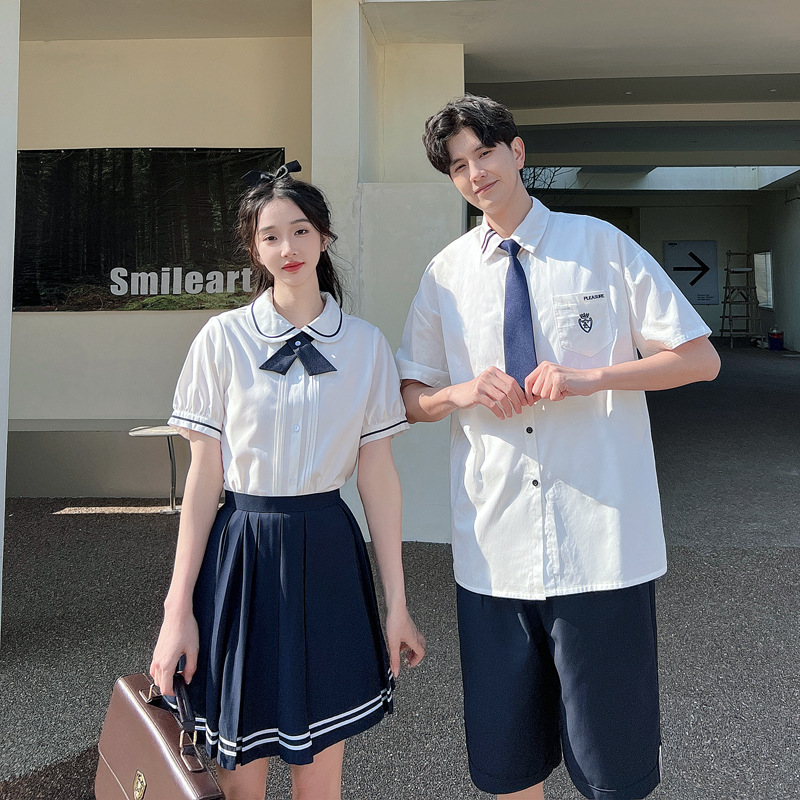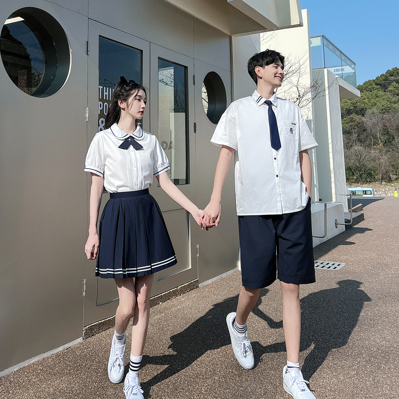리얼 샷 커플 학생 여름 반팔 스커트 남자와 여자의 세트 교복 수업 의류스토어 가기