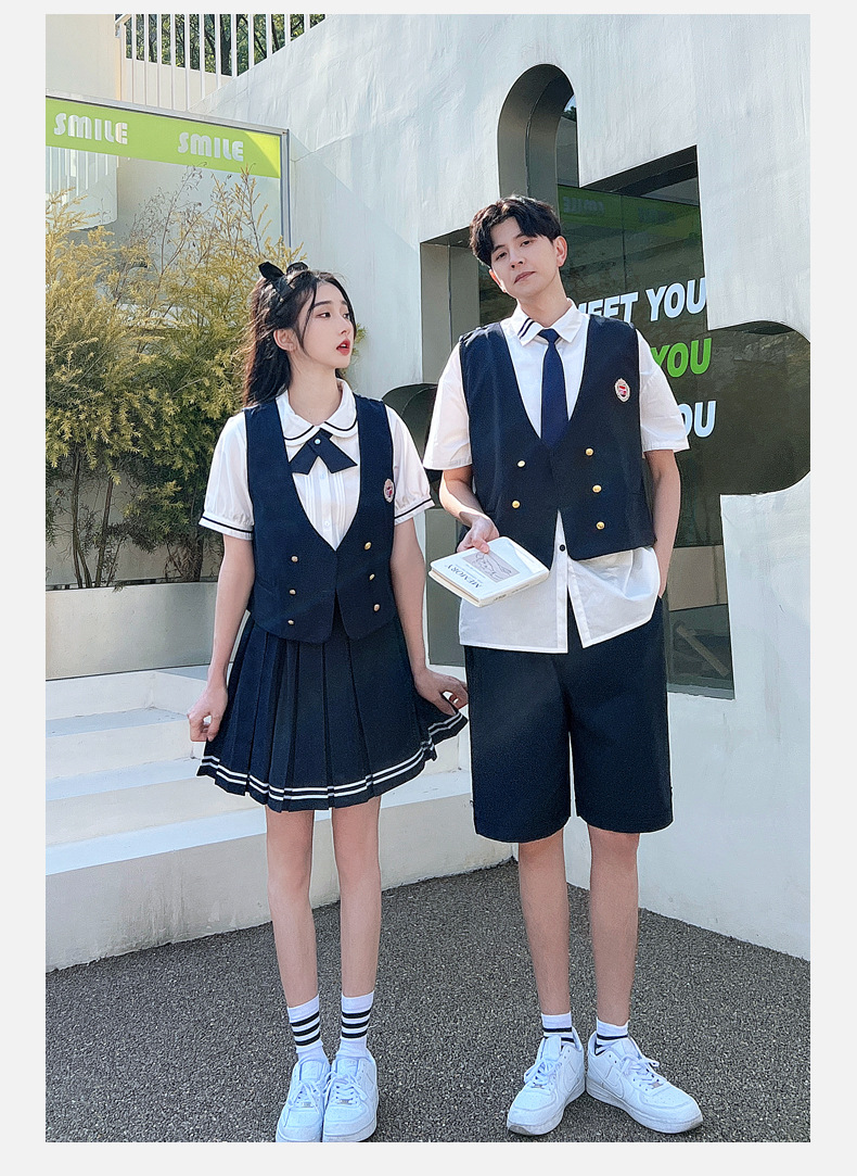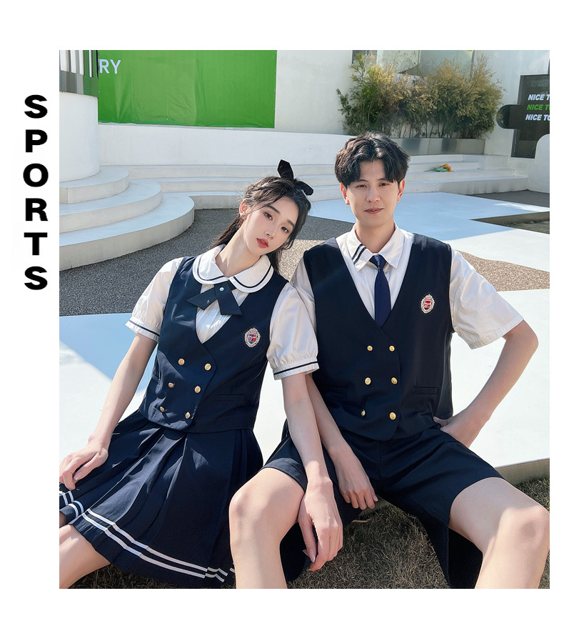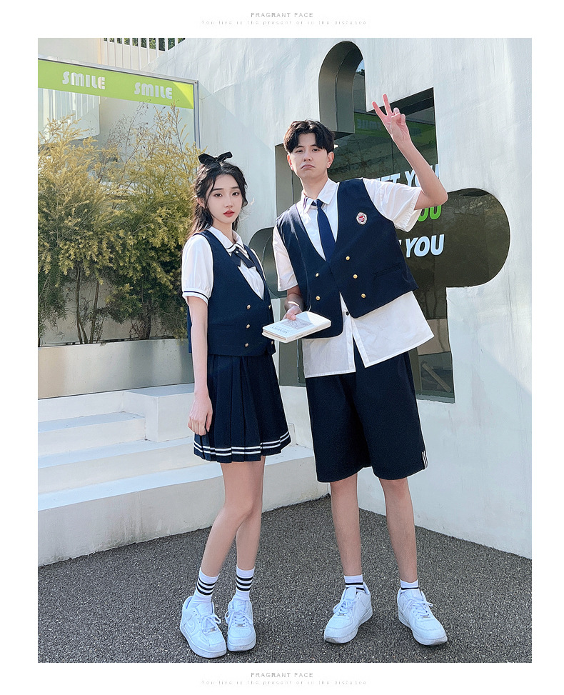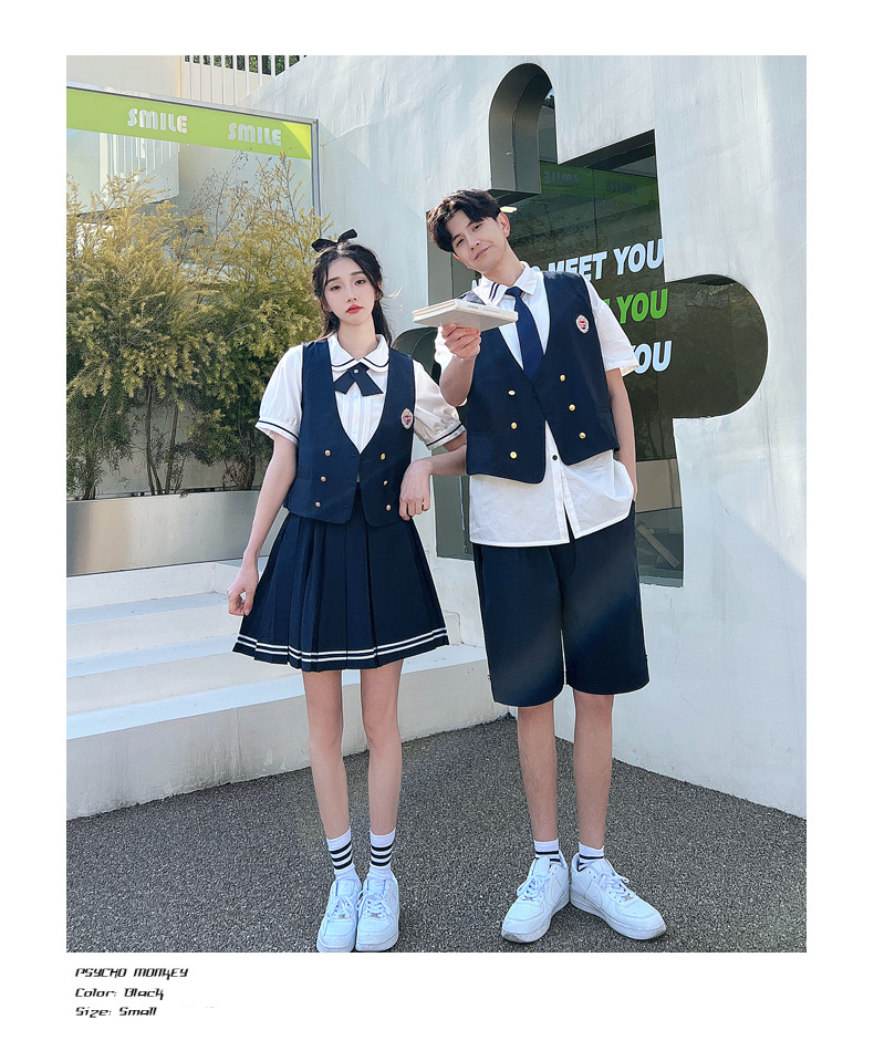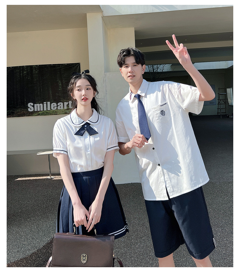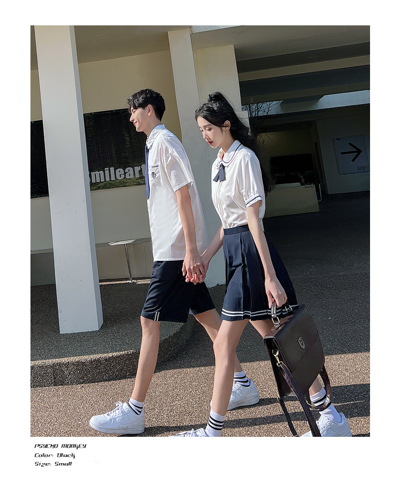 리얼 샷 커플 학생 여름 반팔 스커트 남자와 여자의 세트 교복 수업 의류스토어 가기