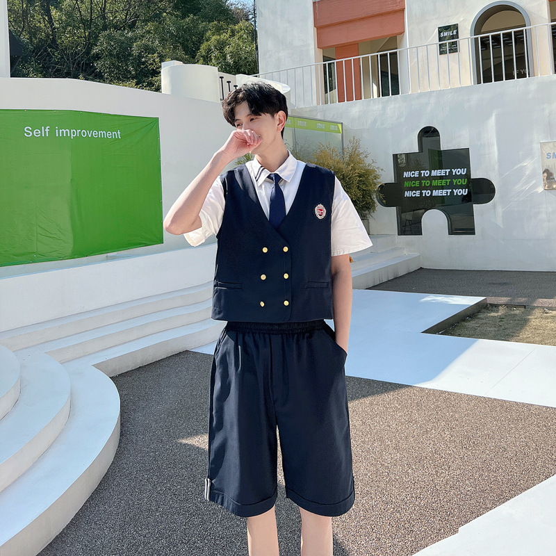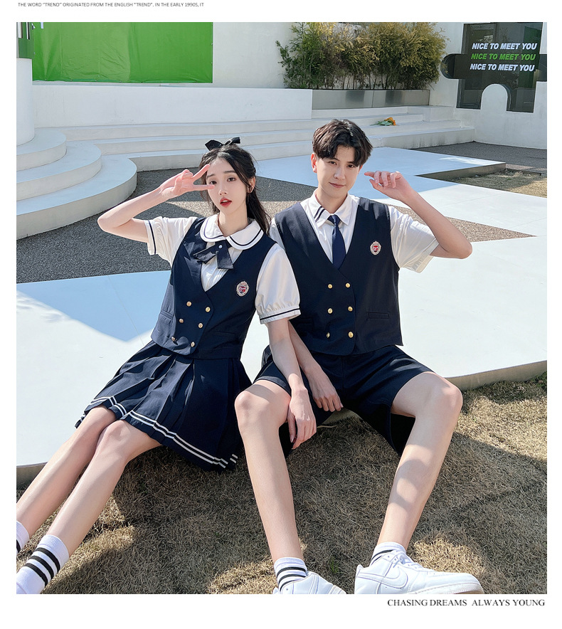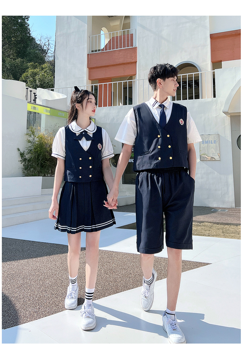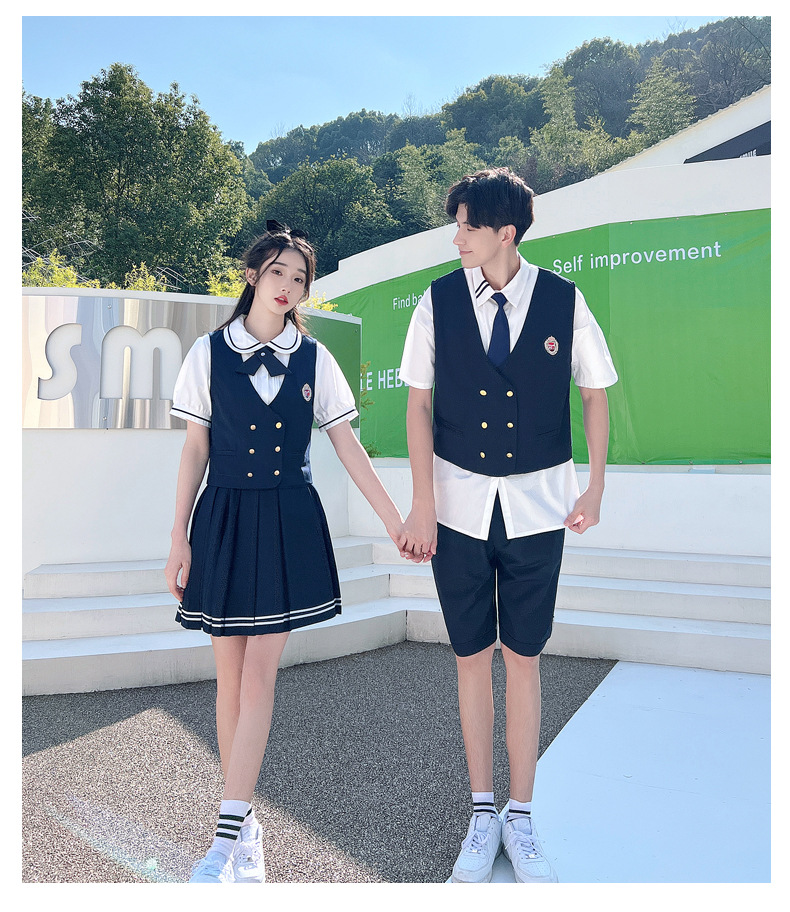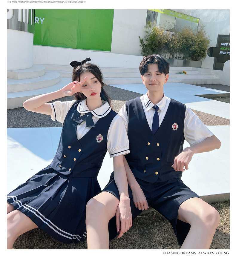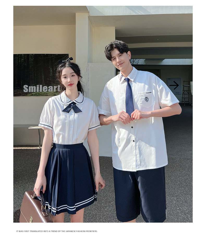 리얼 샷 커플 학생 여름 반팔 스커트 남자와 여자의 세트 교복 수업 의류스토어 가기