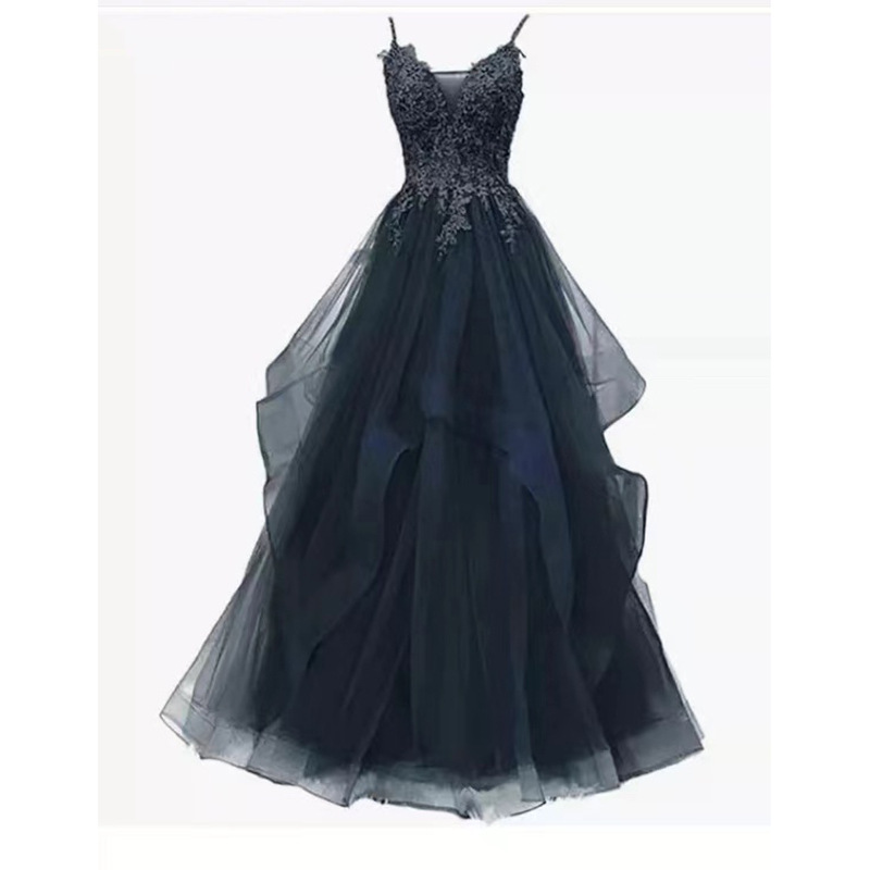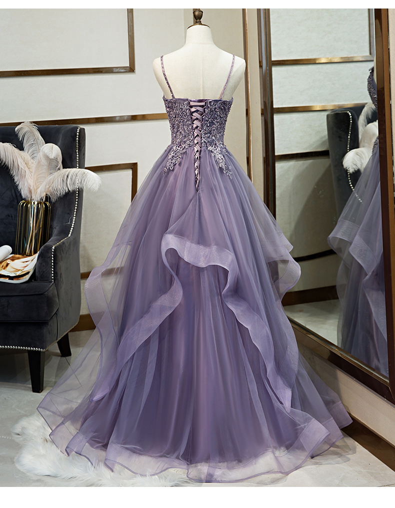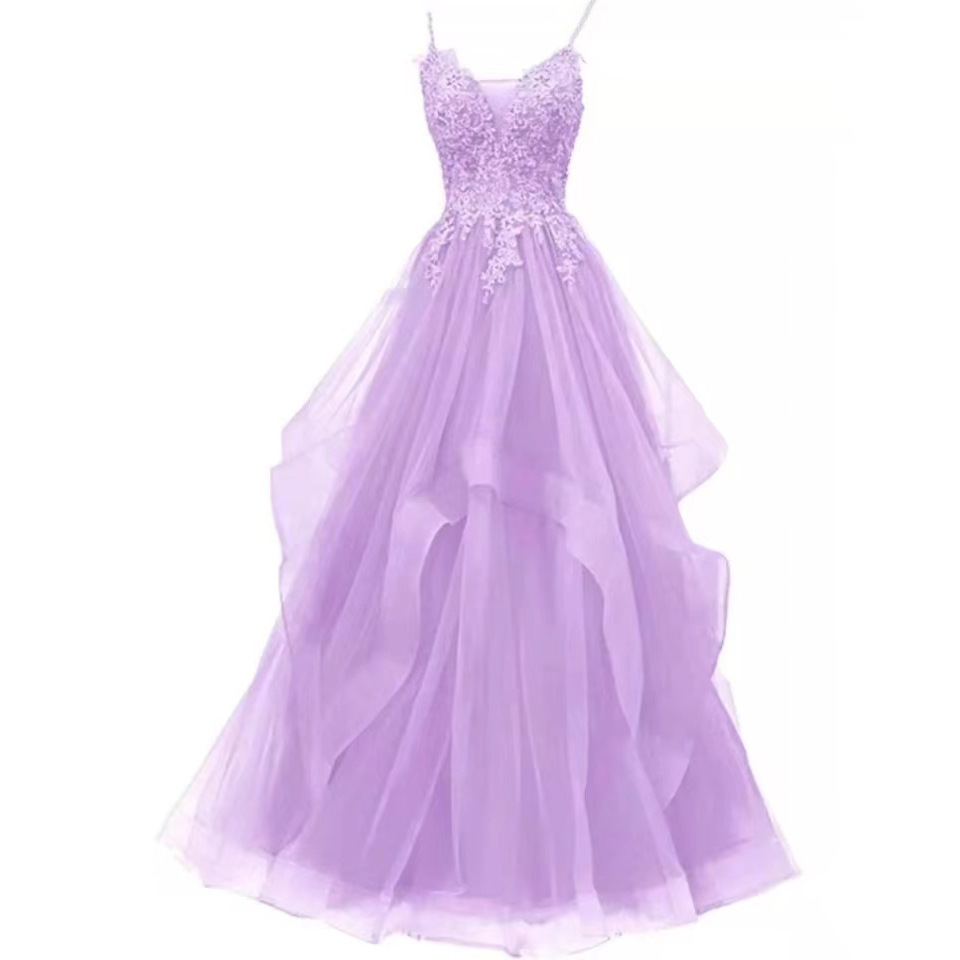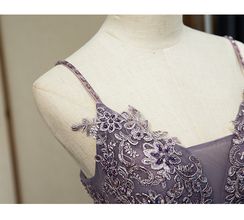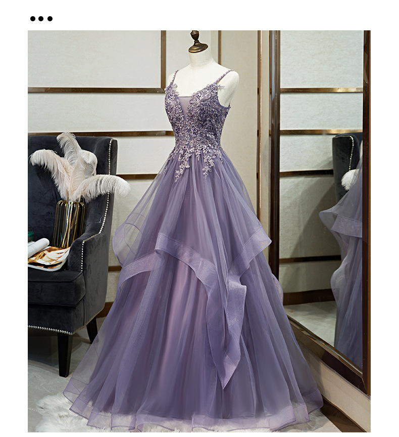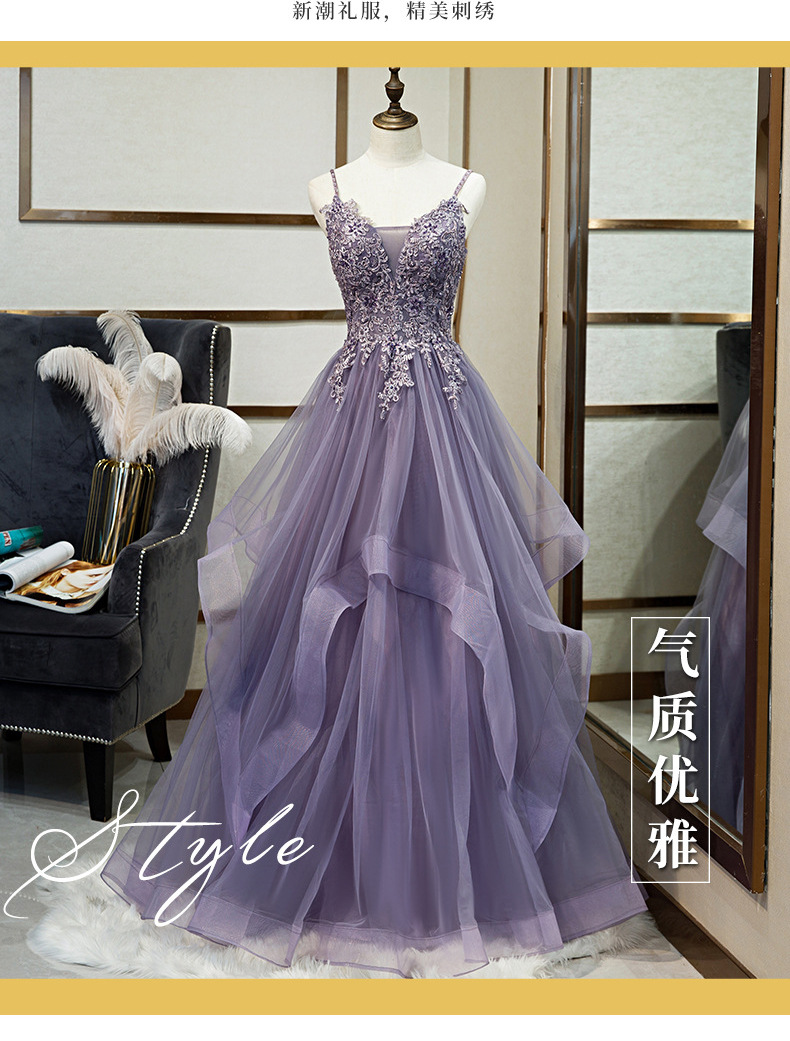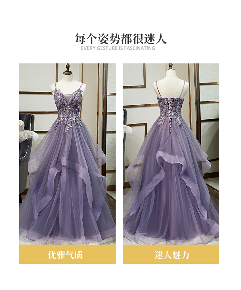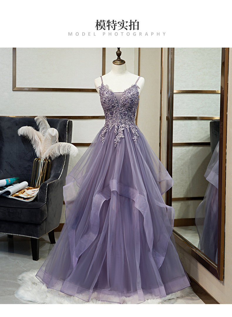 연회 저녁 원피스 원피스 여자의 보라색 슬링 원피스 보컬 아트 가센 스타일 컬러 원사 요정 거즈 원피스 호스트 저녁 원피스