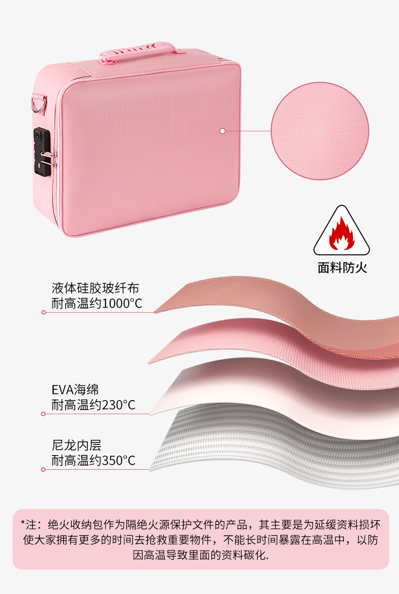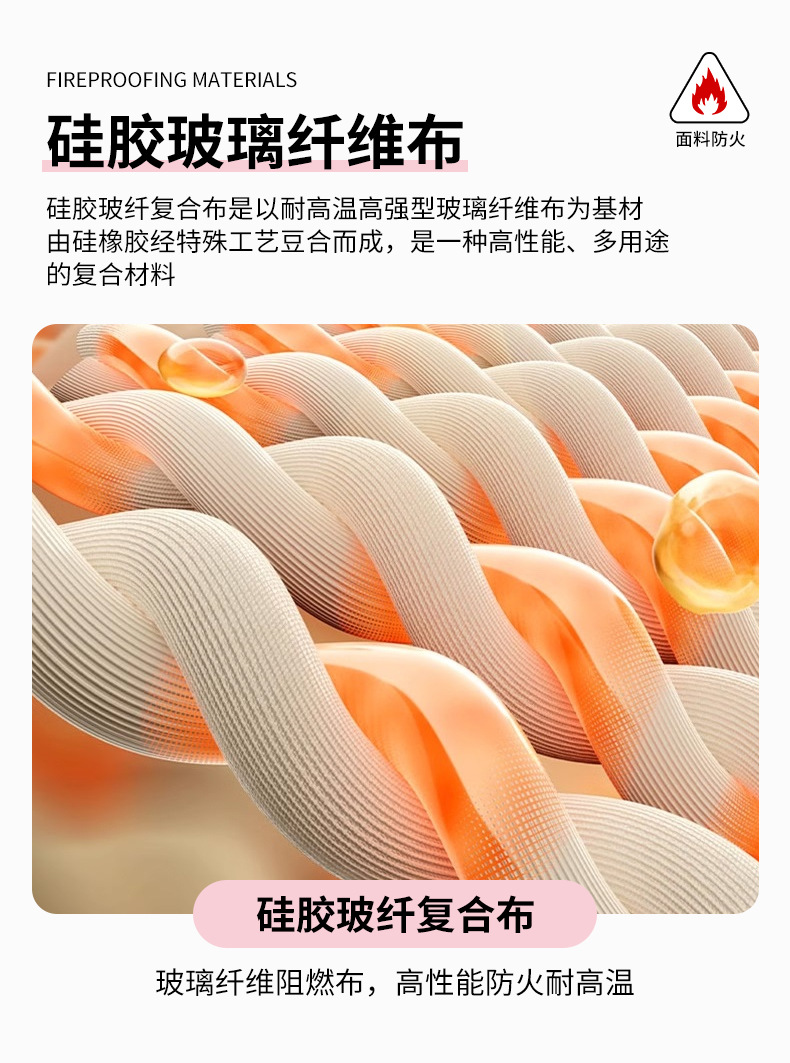本产品采用阻燃面料,具备面料级防火测试认证(可附SGS等证书图),但拉链阻燃、扣具等配件为常规材质,不具备阻燃功能