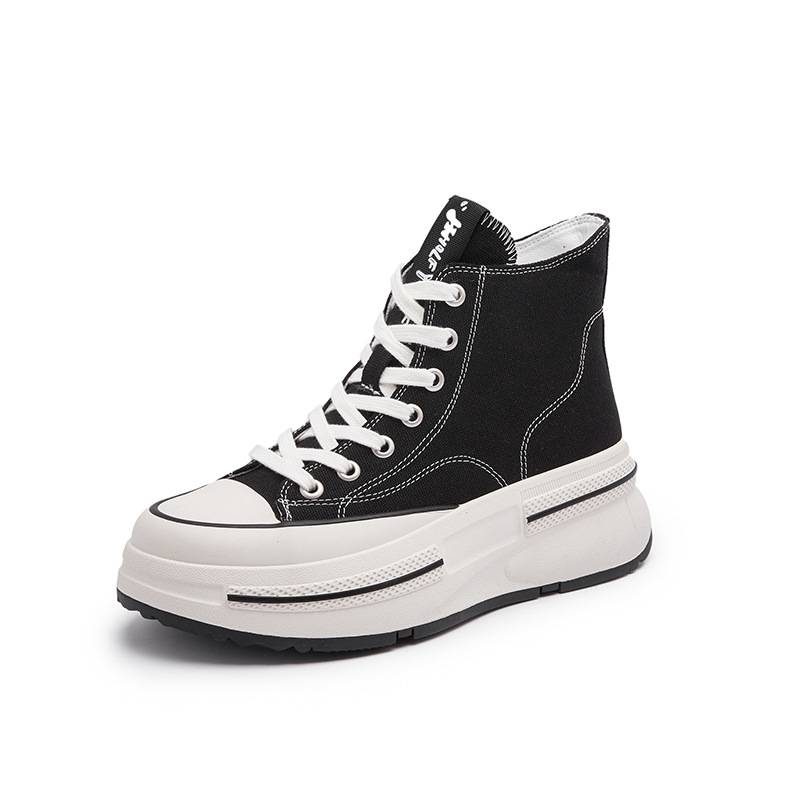 두꺼운 밑창 캔버스 신발 2023 신형 키높이 캐주얼 흰색 신발 학업 스타일 하이탑 연령 감소 통기성 한국식 단색 조수스토어 가기