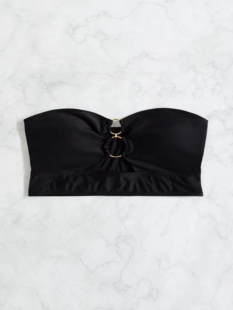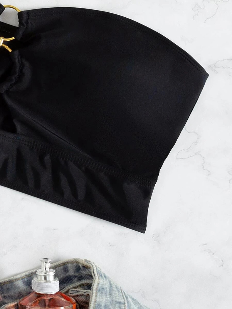 검은 섹시한 끈이없는 수영복 최고 여성의 2024 새로운 유럽 및 미국 스팟 패션 할로우 비치 수영복 여성