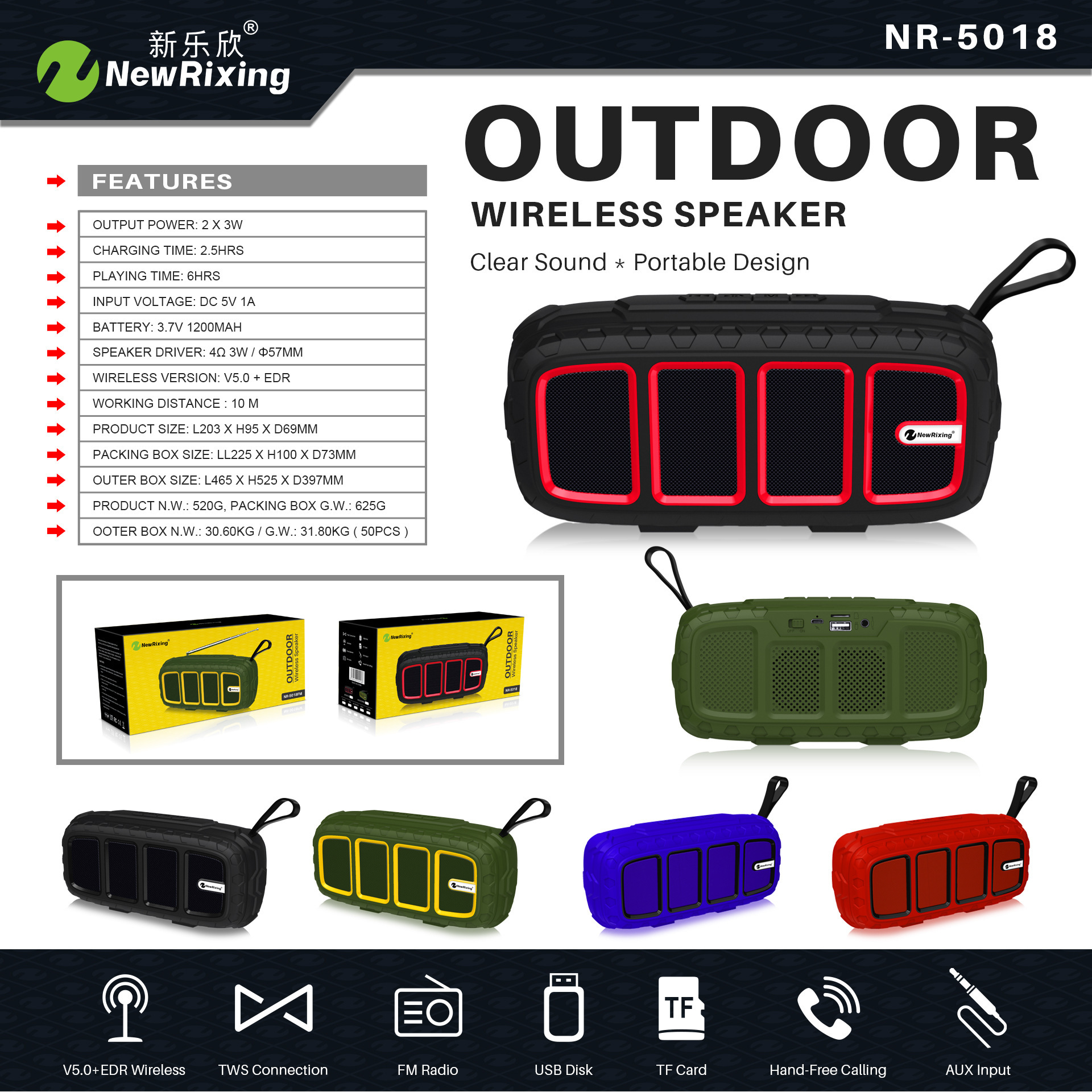NR5018 블루투스 스피커 야외 스포츠 등산 승마 휴대용 미니 무선 오디오 카드 새로운 대외 무역