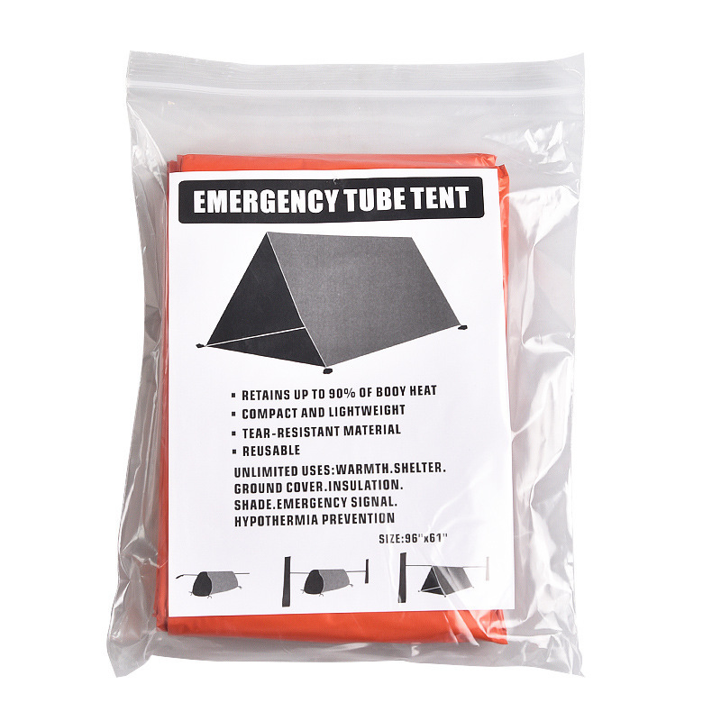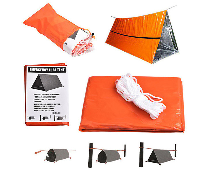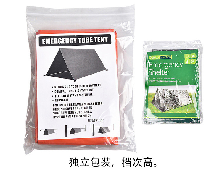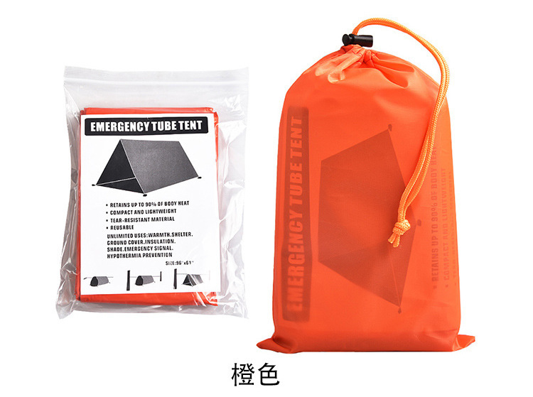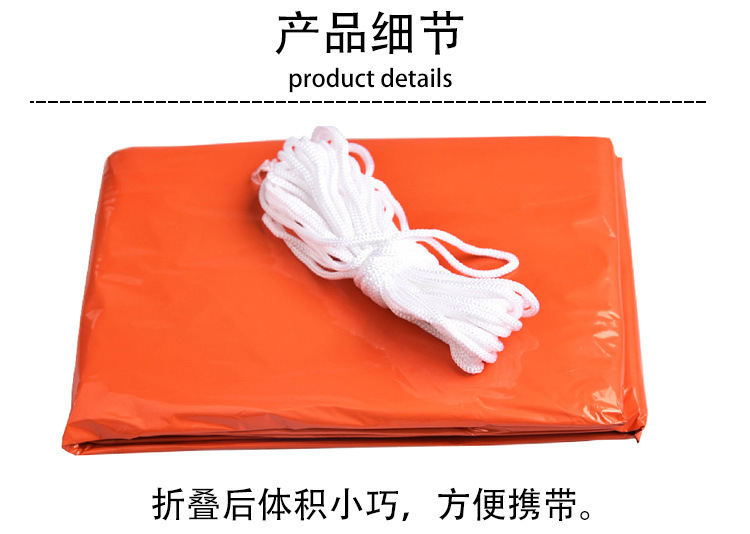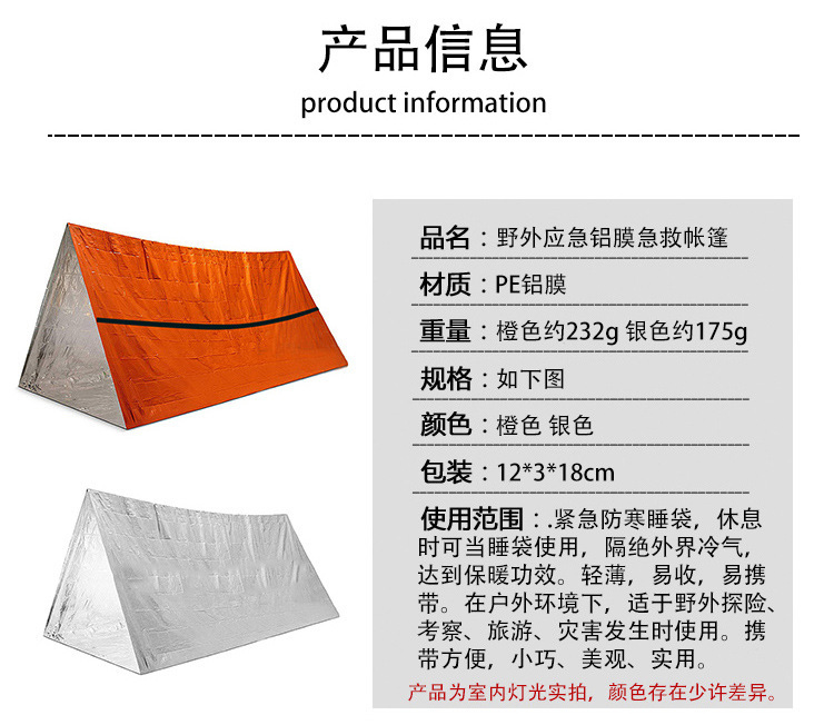 清单:铝膜帐篷*1 8米长白绳*1 橙色收纳袋*1