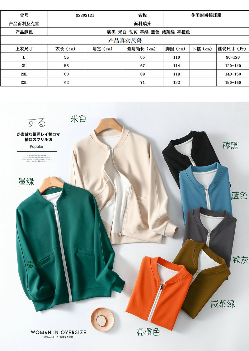 봄과 가을 야구 세트 코트 소녀 학생 파티 유행 두꺼운 재킷 지퍼 스포츠 패션 탑스토어 가기