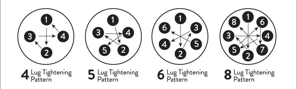 ---将螺纹锁固液涂抹到螺柱(短螺纹端)上,并拧紧至20英尺/磅。凸耳螺母应按照OEM规格拧紧。为了您的安全,25-50英里后重新拧紧所有硬件(螺柱和螺母)。