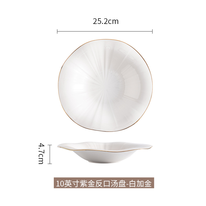 • 10 인치 Zijin 백머스 스몰 풋 수프 볼-화이트 플러스 골드