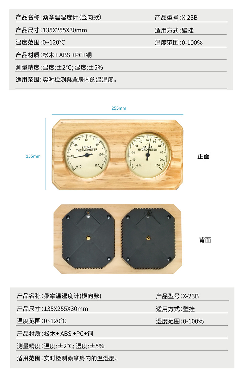 오픈 타이 사우나 실내 온도 및 습도 미터 실내 땀 스팀 룸 특수 벽 장착 기계식 더블 테이블 온도계 습도계