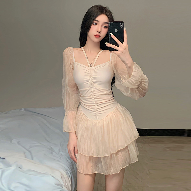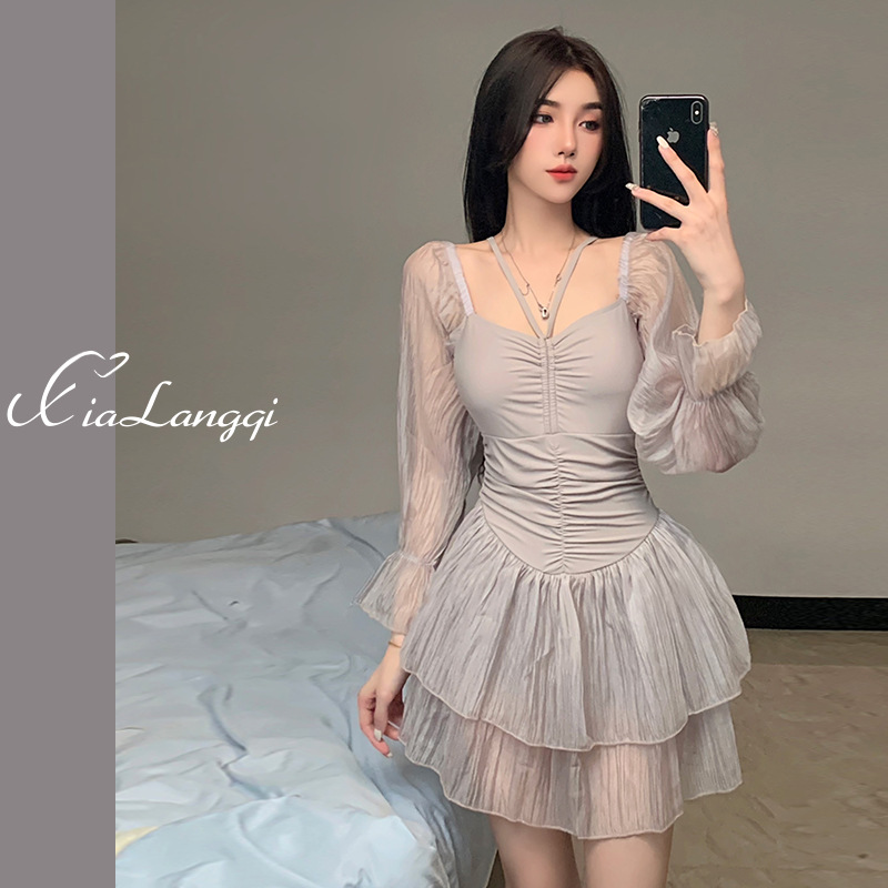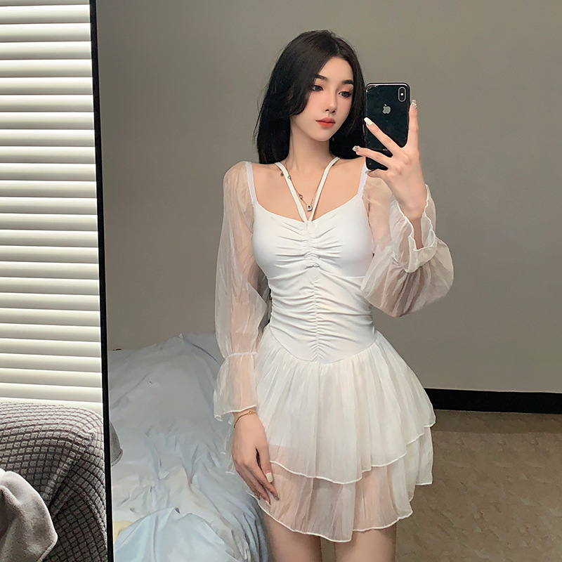수영복 여성용 하이 엔드 2023 새로운 보수적 배꼽 커버 슬림 원피스 스커트 플러스 사이즈 페어리 스타일 온천 수영복