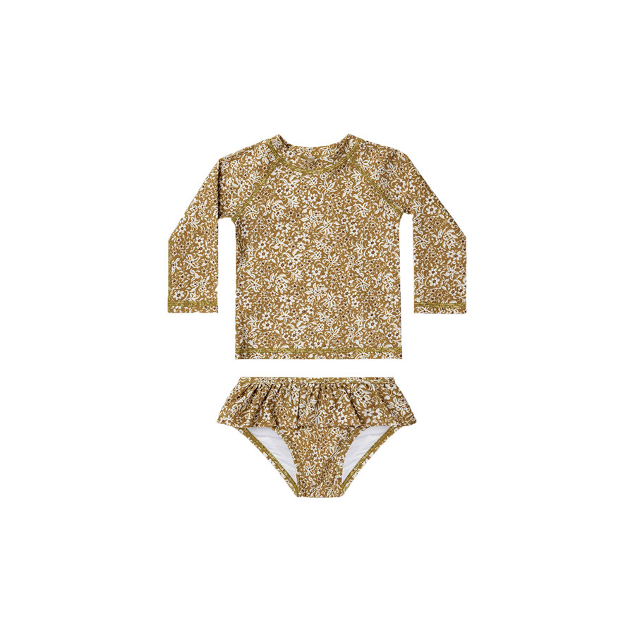 어린이 꽃 무늬 스플릿 수영복 2025 새로운 스타일 소녀 긴팔 태양 보호 수영복 아기 소녀 속건성 수영복