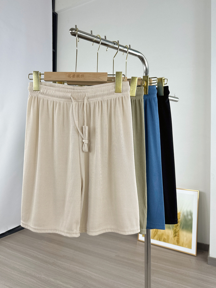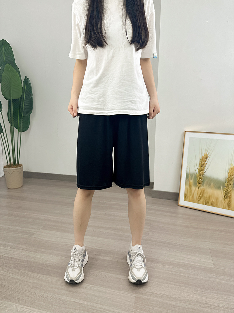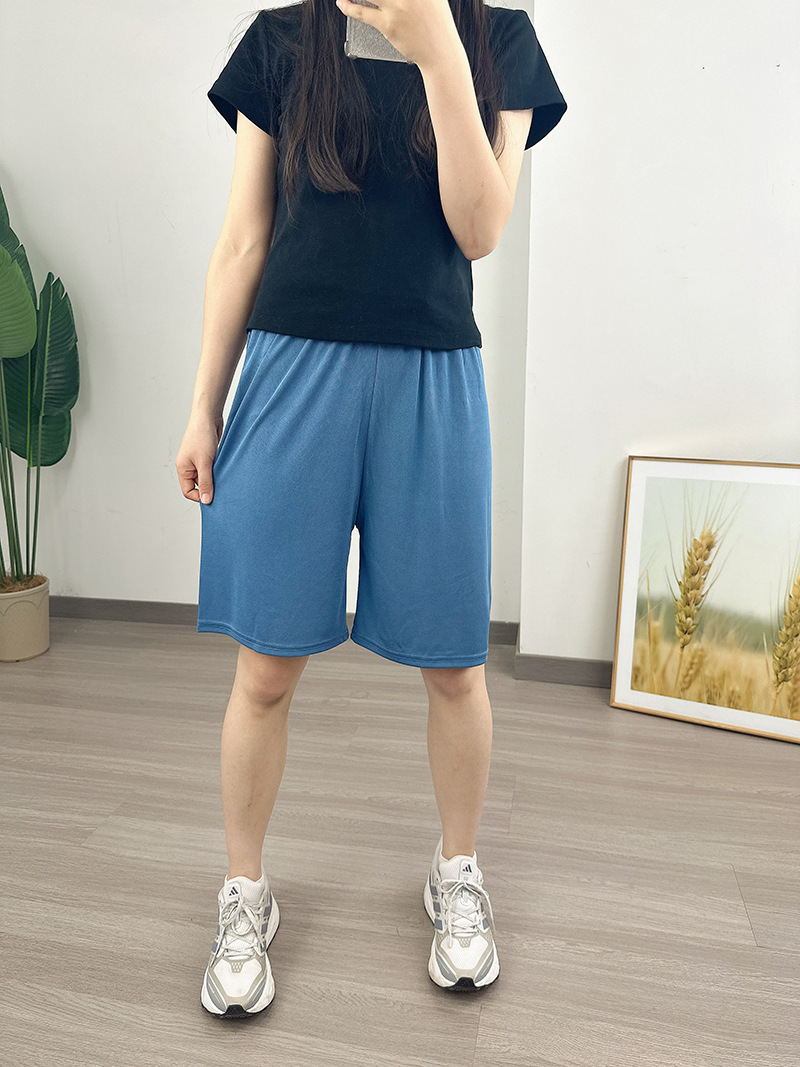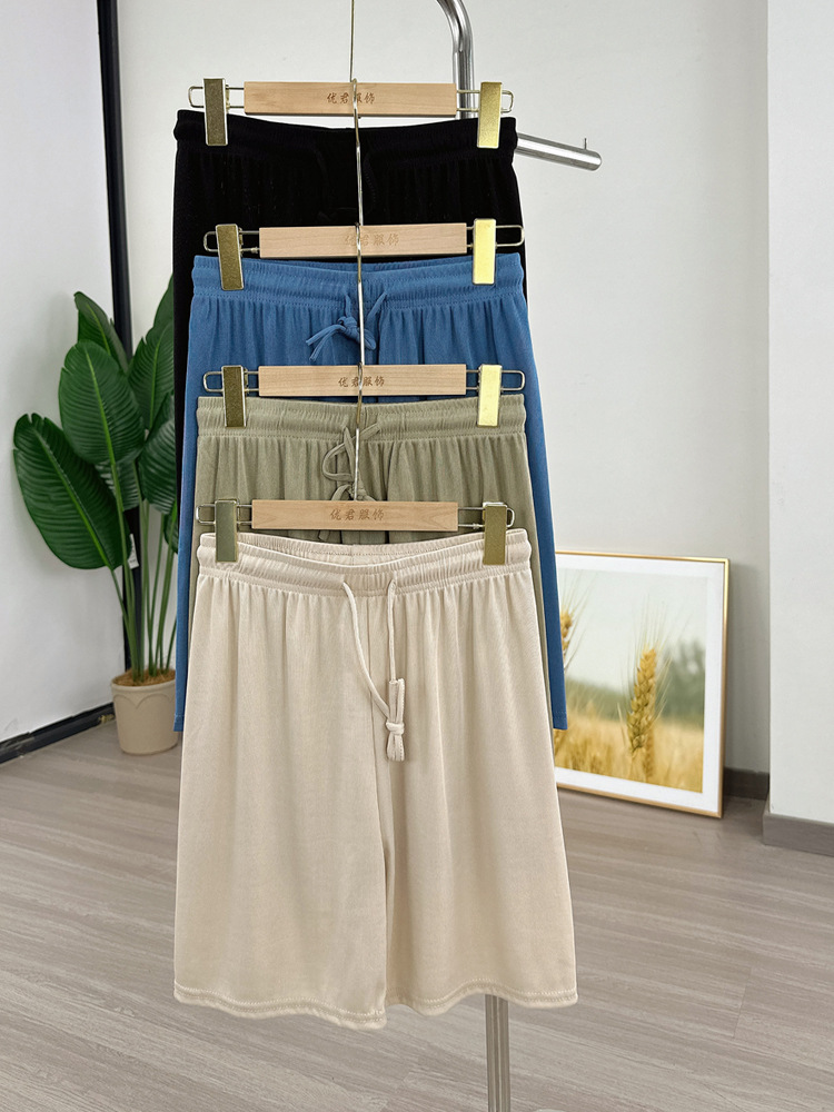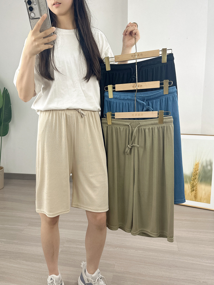 플러스 사이즈 대외 무역 여성 반바지 5 점 바지 여성 높은 허리 아이스 실크 바지 느슨한 여성 여름 외부 착용 캐주얼 스트레이트 반바지스토어 가기
