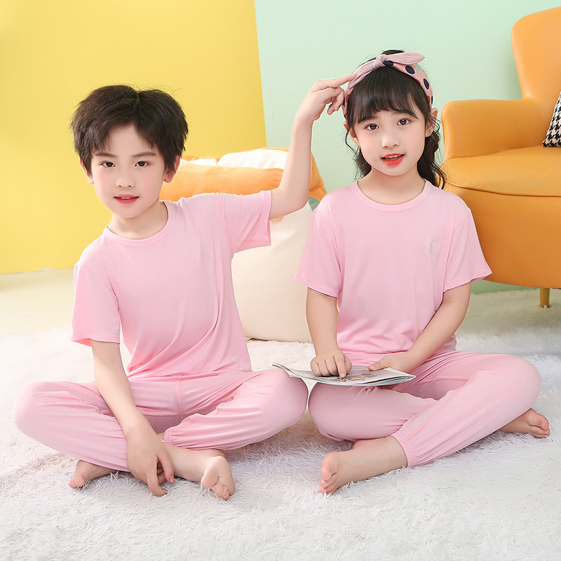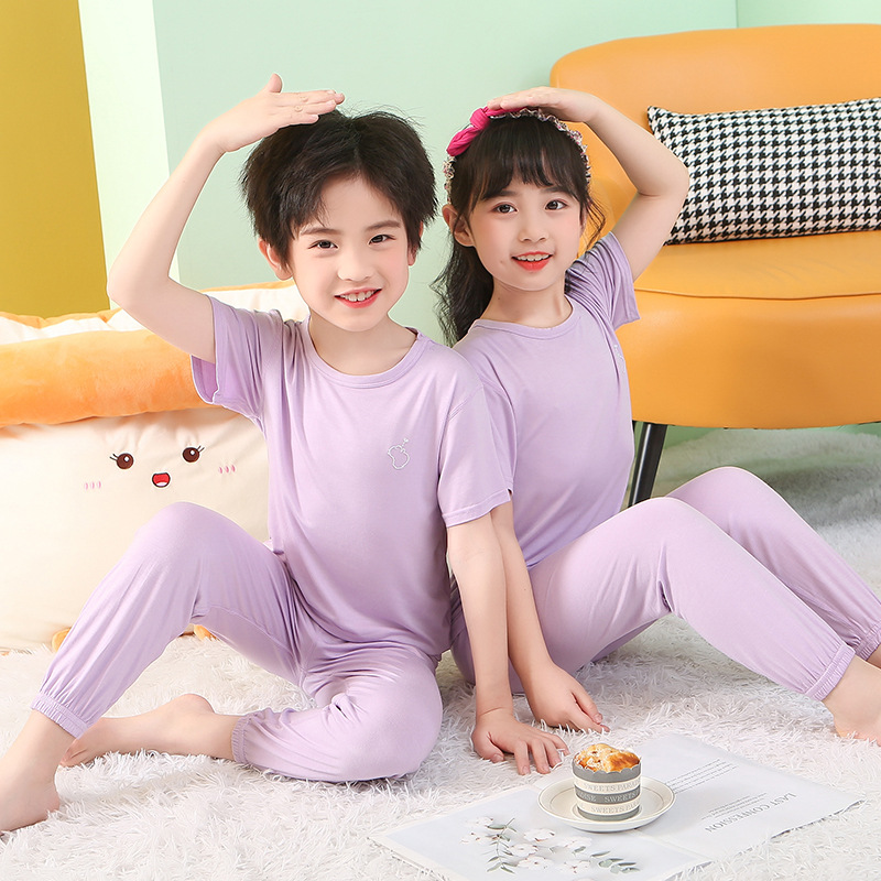 어린이 가정 의류 세트 여름 얇은 캔디 색 반팔 바지 잠옷 소년과 소녀를위한 아기의 에어컨 의류