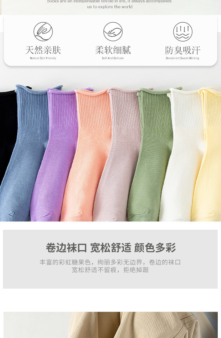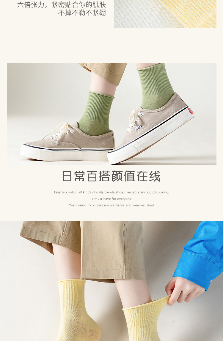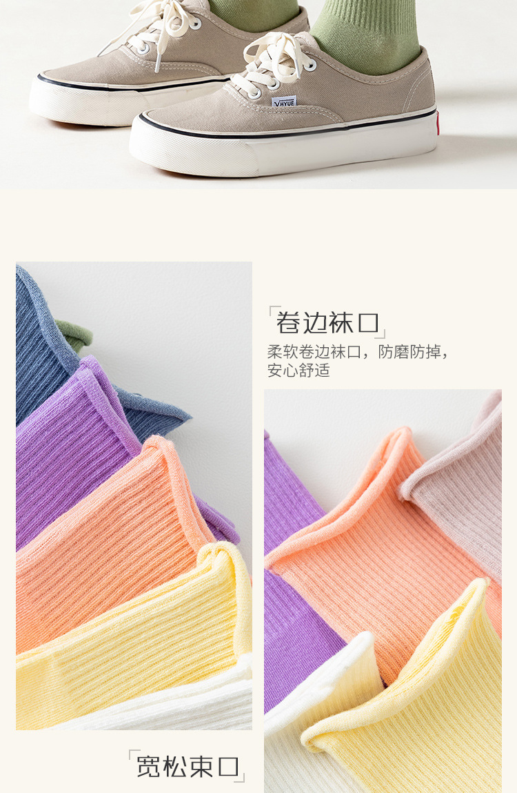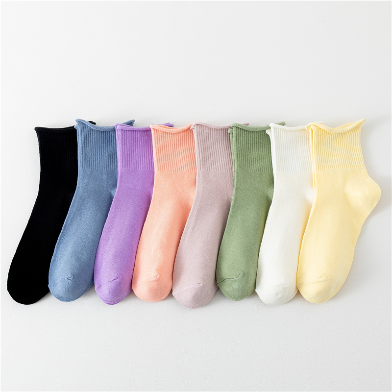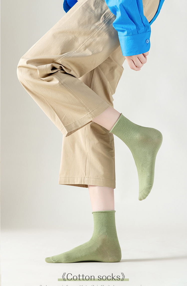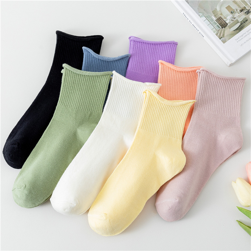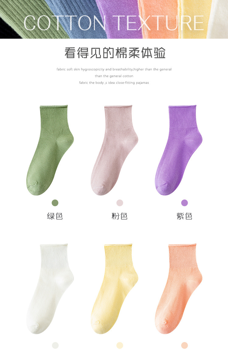 양말 여성용 미드 튜브 면 트렌디 봄과 가을 단색 캔디 컬러 면 트렌디 컬 느슨한 입 여름 모든 경기 달 양말스토어 가기