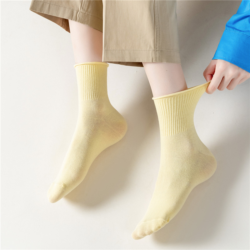 양말 여성용 미드 튜브 면 트렌디 봄과 가을 단색 캔디 컬러 면 트렌디 컬 느슨한 입 여름 모든 경기 달 양말