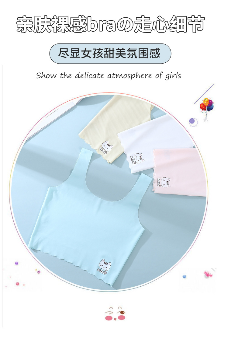 아이스 실크 어린이 여아 속옷 Mengmeng 8-13 세 소녀를위한 귀여운 인쇄 만화 중간 길이 튜브 길이 브래지어