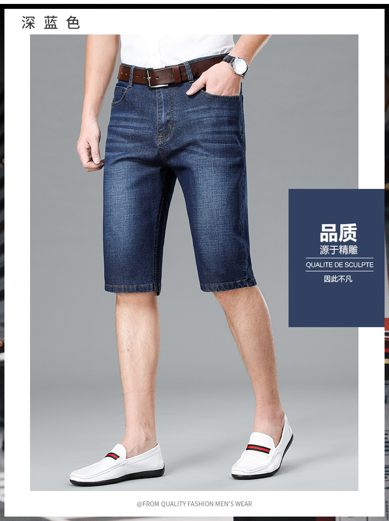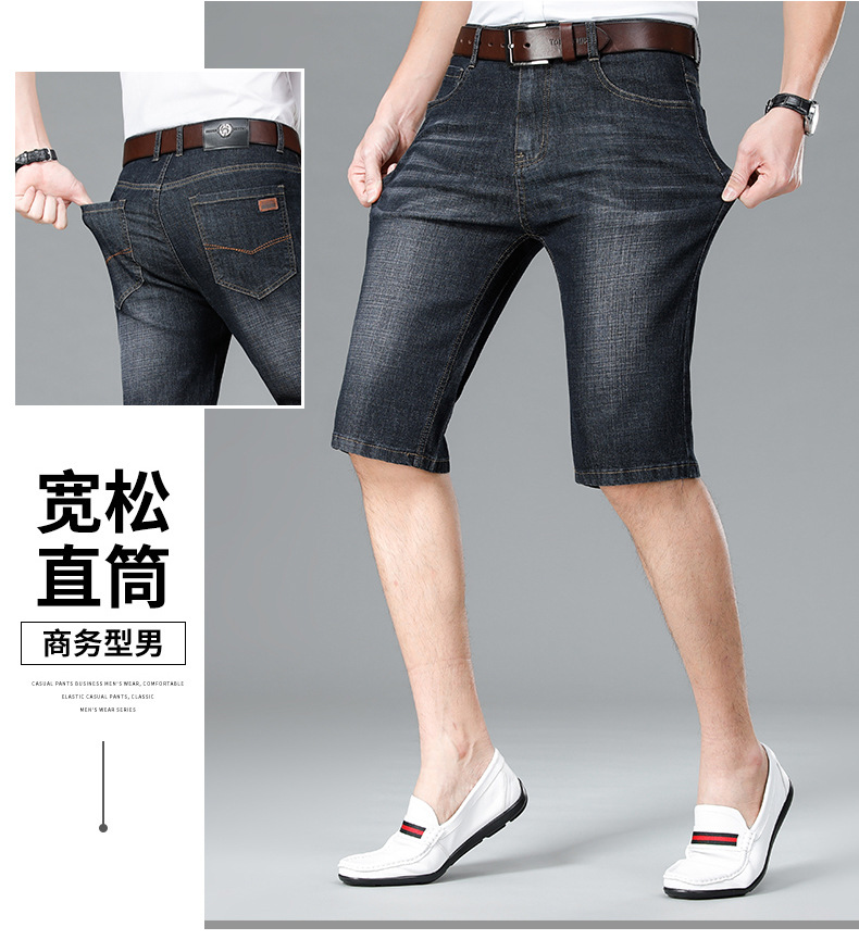 2023 여름 새 남자 5 점 청바지 스트레이트 트렌디 패션 슬림 캐주얼 5 반바지 도매