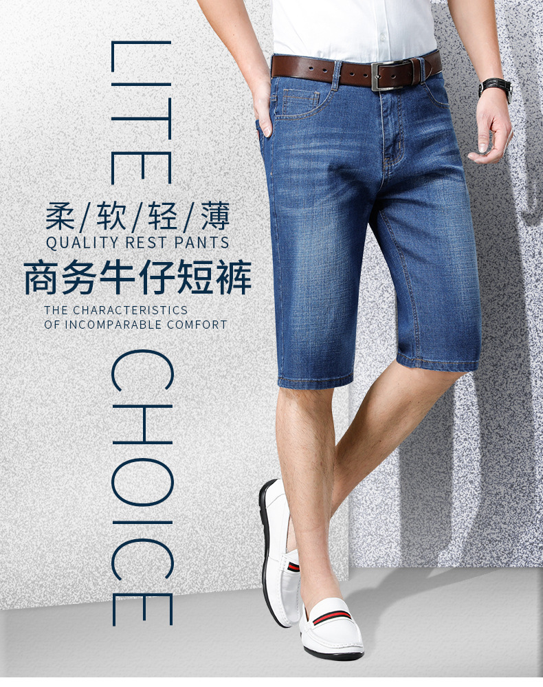 2023 여름 새 남자 5 점 청바지 스트레이트 트렌디 패션 슬림 캐주얼 5 반바지 도매스토어 가기