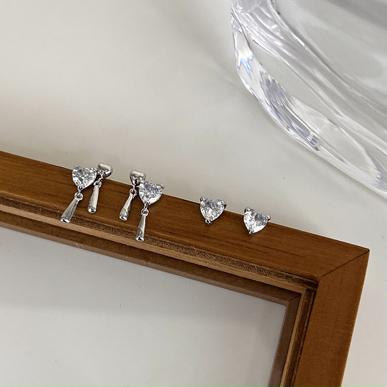 더블 클릭 러브 지르콘 4 피스 귀걸이 여성용 스위트 쿨 콜드 스타일 작은 귀걸이 라이트 럭셔리 패션 센스 귀걸이 액세서리
