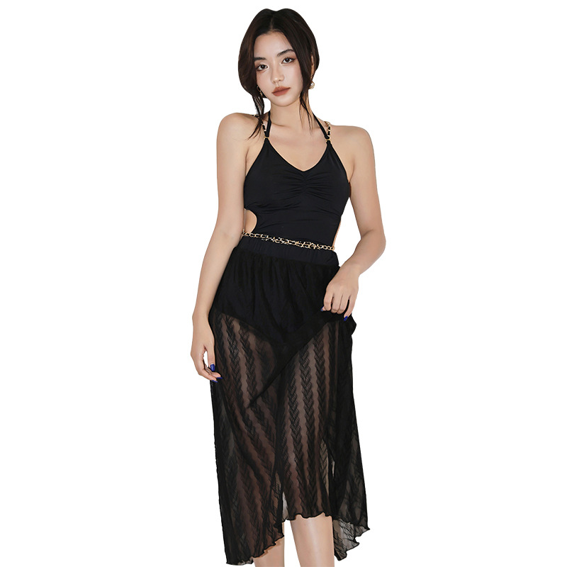 2023 새로운 섹시한 등이없는 원피스 수영복 보수적 인 배꼽 덮개 망토 스커트 여성용 2 피스 온천 휴가 수영복스토어 가기