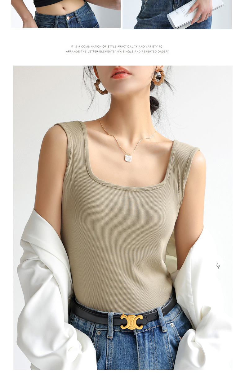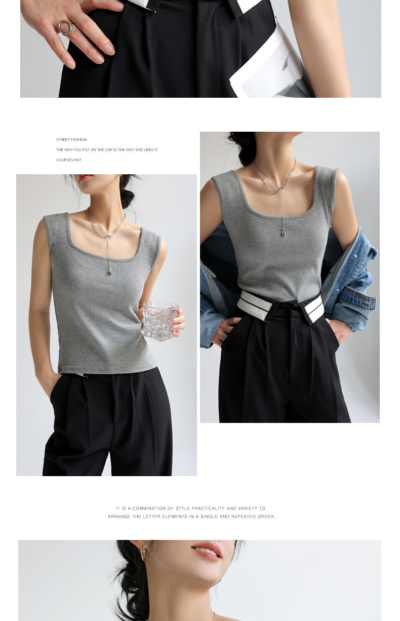 인기있는 바닥 사각 칼라 작은 엄격한 선택 조끼 여성용 민소매 양복 조끼 여름 얇은 겉옷 홀터 탑 느슨한 모든 경기 내부스토어 가기