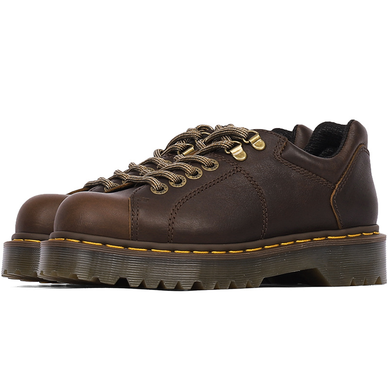 빈티지 골동품 두꺼운 밑창 짧은 얼굴 부츠 여성용 다크 브라운 빈티지 상승 마틴 신발 Goodyear 공예 작은 가죽 신발스토어 가기