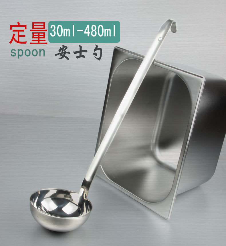 不锈钢安汁壳 厨房大汤勺长柄调料勺餐厅盛汤勺30ML至600ML定量勺