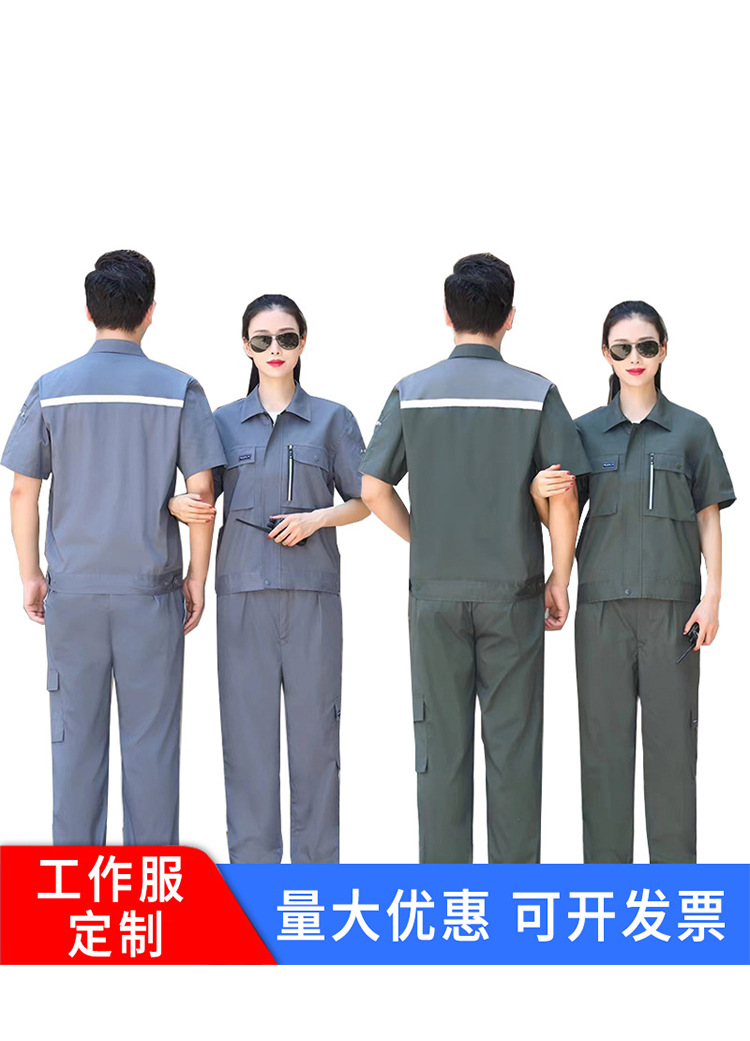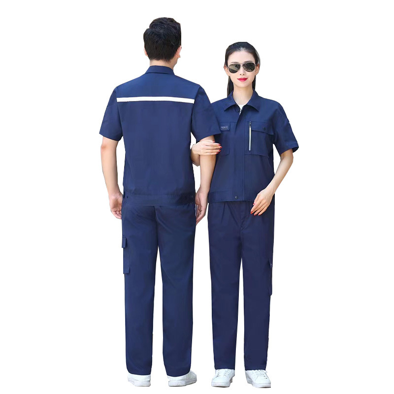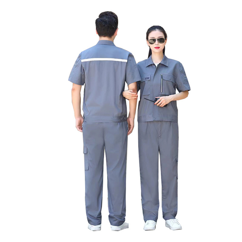작업복 세트 남성과 여성을위한 다채로운 작은 지퍼 여름 얇은 자동 수리 서비스 의류 짧은 소매 작업복 인쇄 및 자수스토어 가기