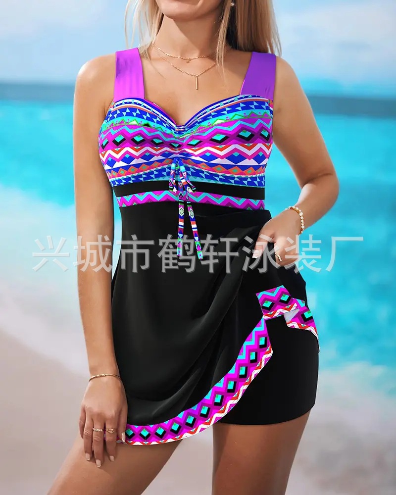 2024 스플릿 플러스 사이즈 타키니 슬리밍 배 커버 유럽과 미국의 보수적 인 복서 팬티 독립 스테이션 크로스 보더 대외 무역 수영복 여성
