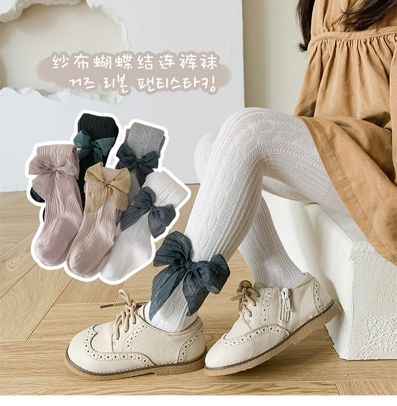 여자 가을 흰색 레깅스 팬티 스타킹 어린이 팬티 스타킹 거즈 활 아기 학생 바깥 입고 세련된 양말스토어 가기