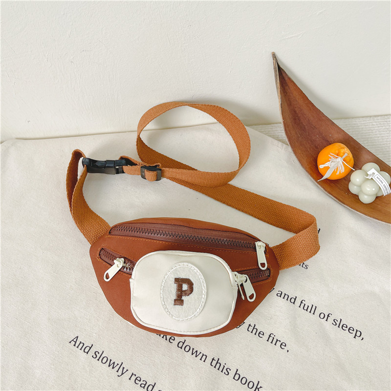 어린이 가방 2023 새로운 한국어 편지 아기 가슴 가방 소녀 대비 색상 허리 가방 소년 경량 크로스 바디 가방 도매스토어 가기