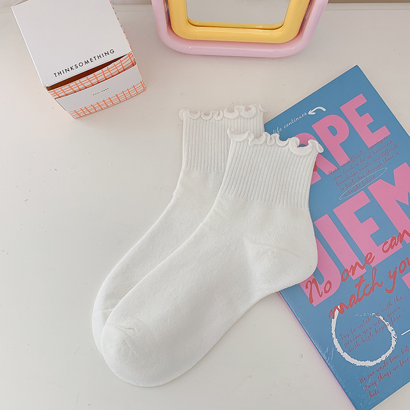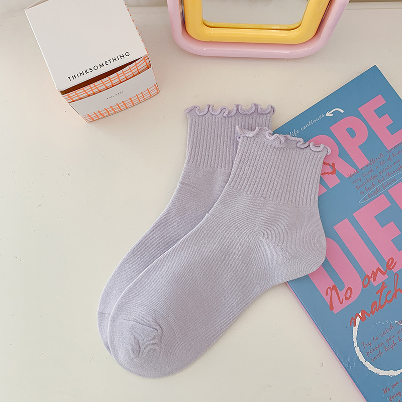 木耳边花边袜子女短筒ins潮夏季薄款可爱日系莫兰迪夏天jk中筒袜批发