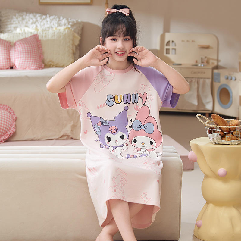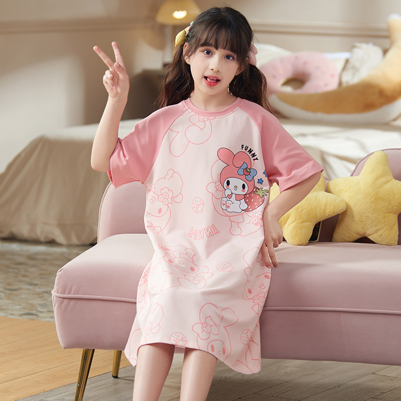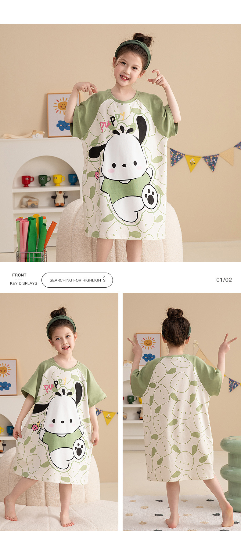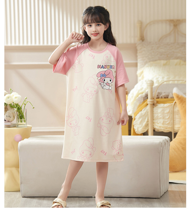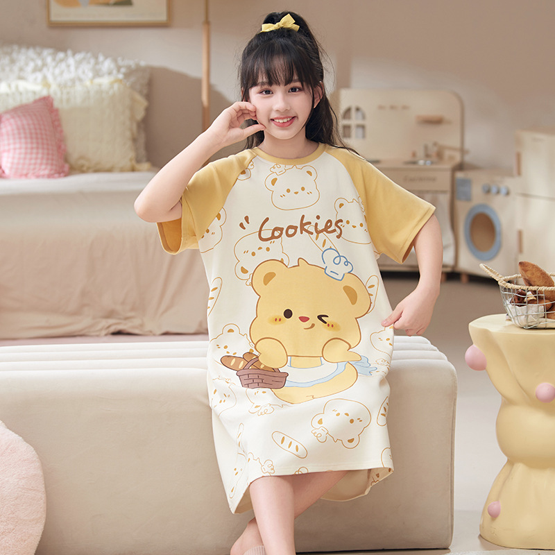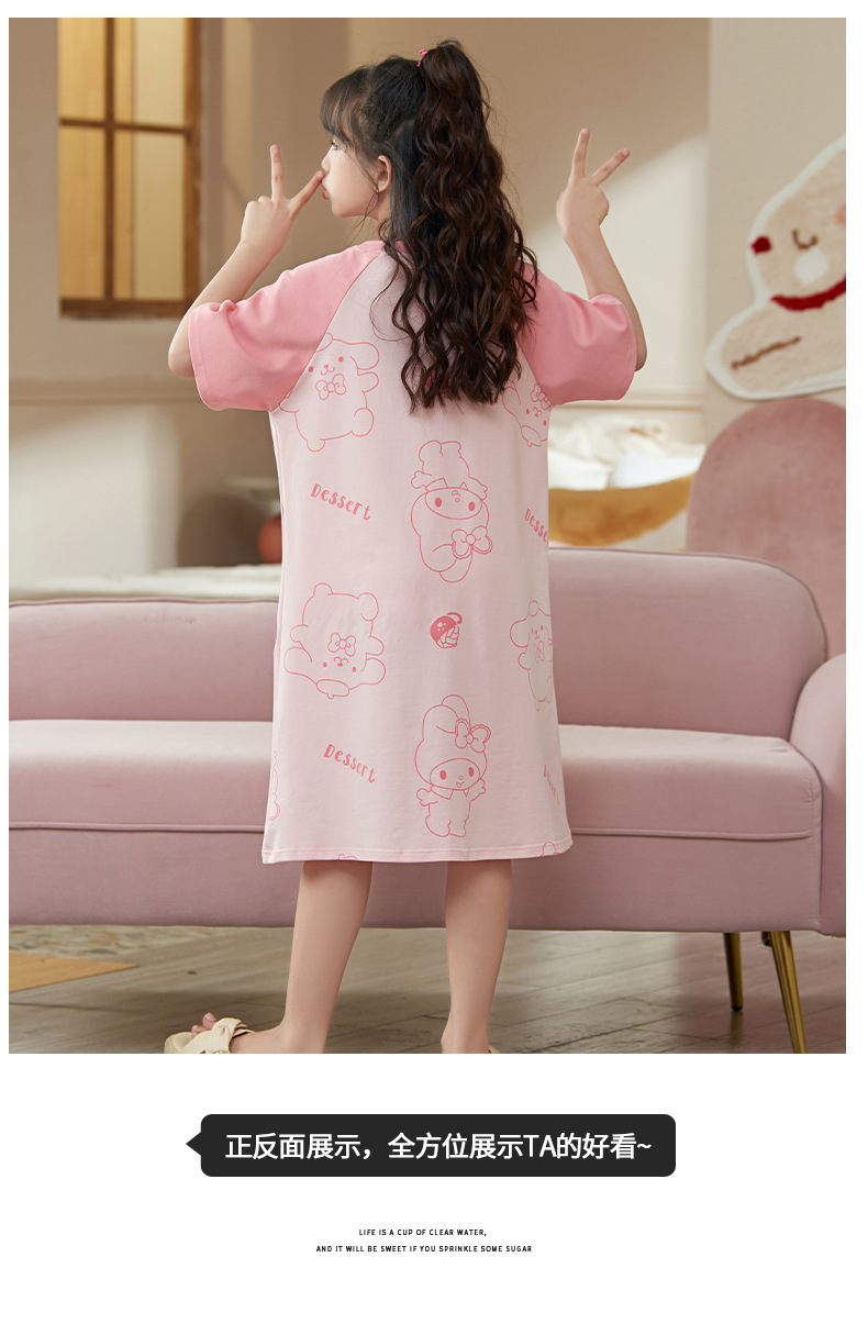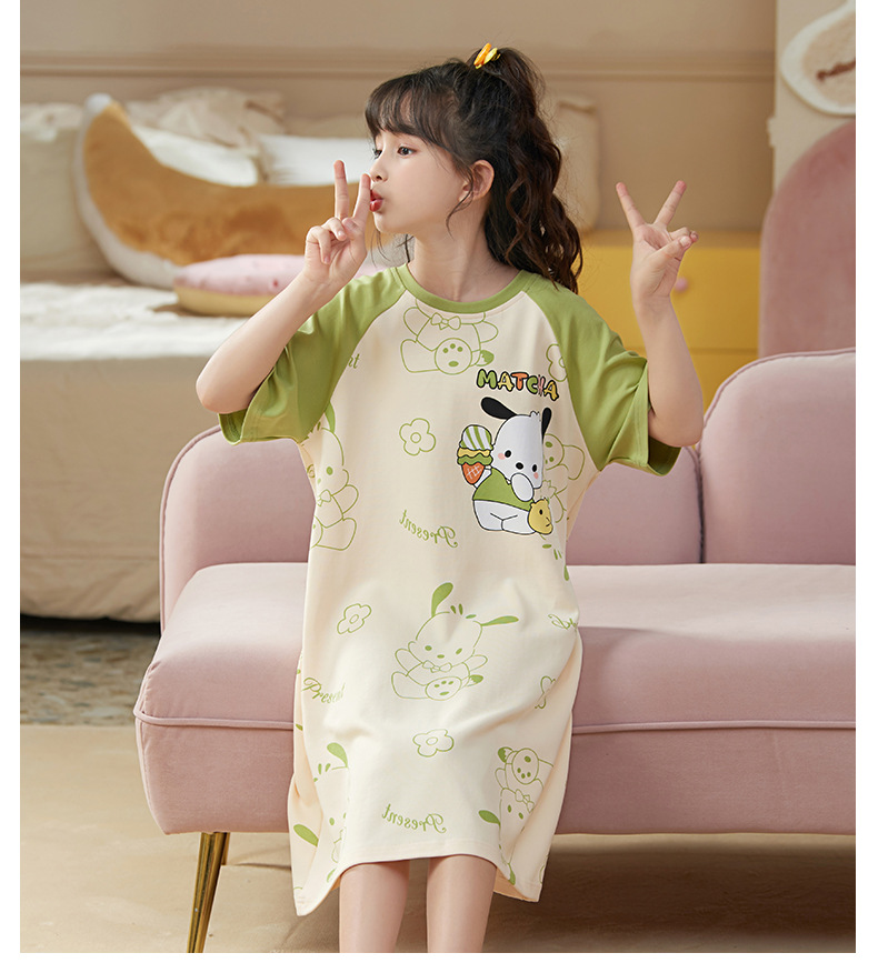 어린이 잠옷 2025 년 여름 새 순면 반소매 여아 잠옷 큰 어린이 어린 소녀의 원피스