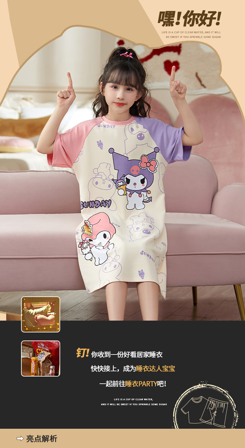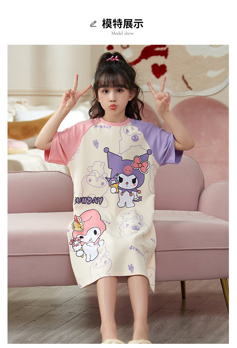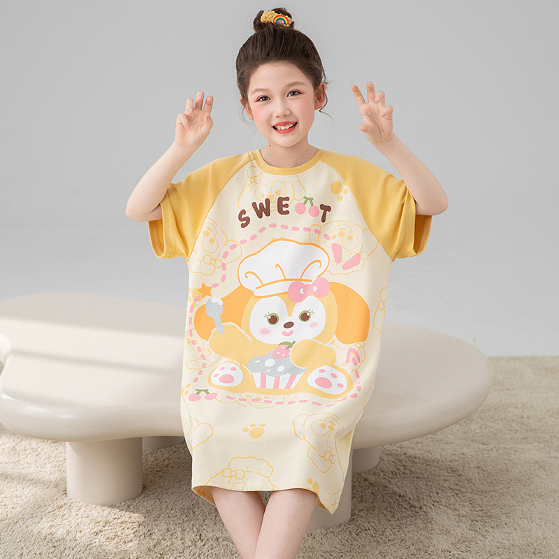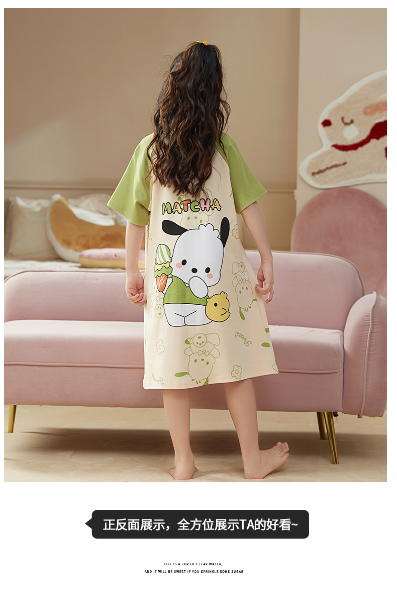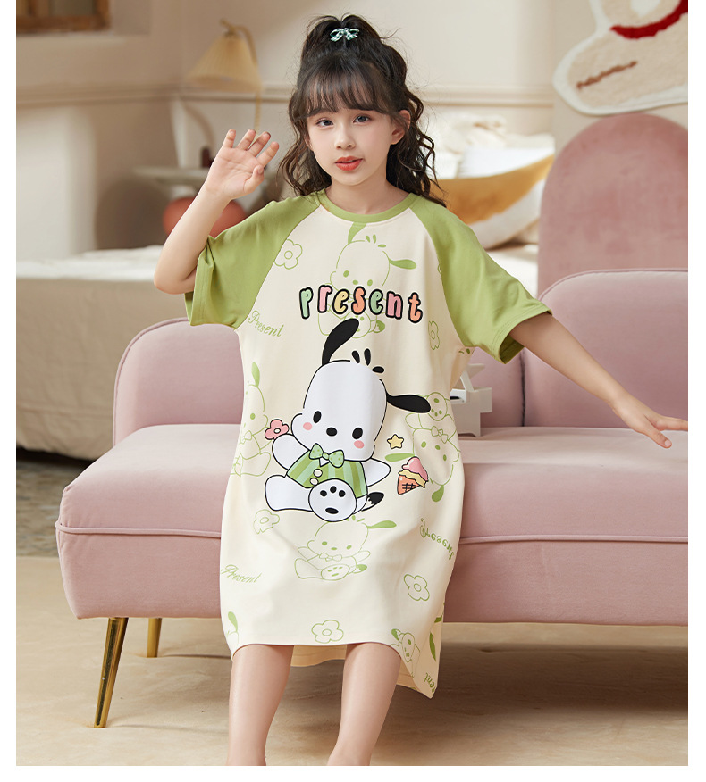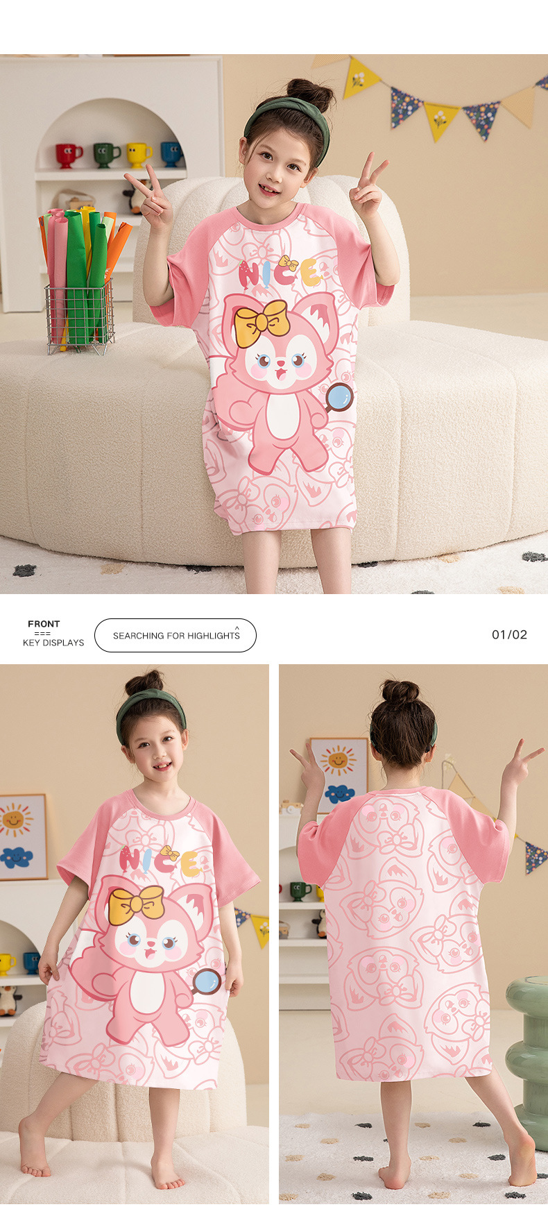 어린이 잠옷 2025 년 여름 새 순면 반소매 여아 잠옷 큰 어린이 어린 소녀의 원피스
