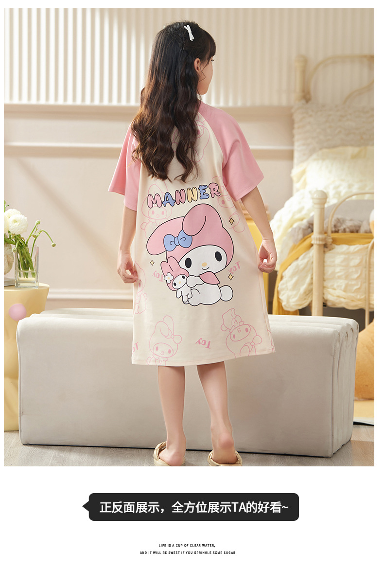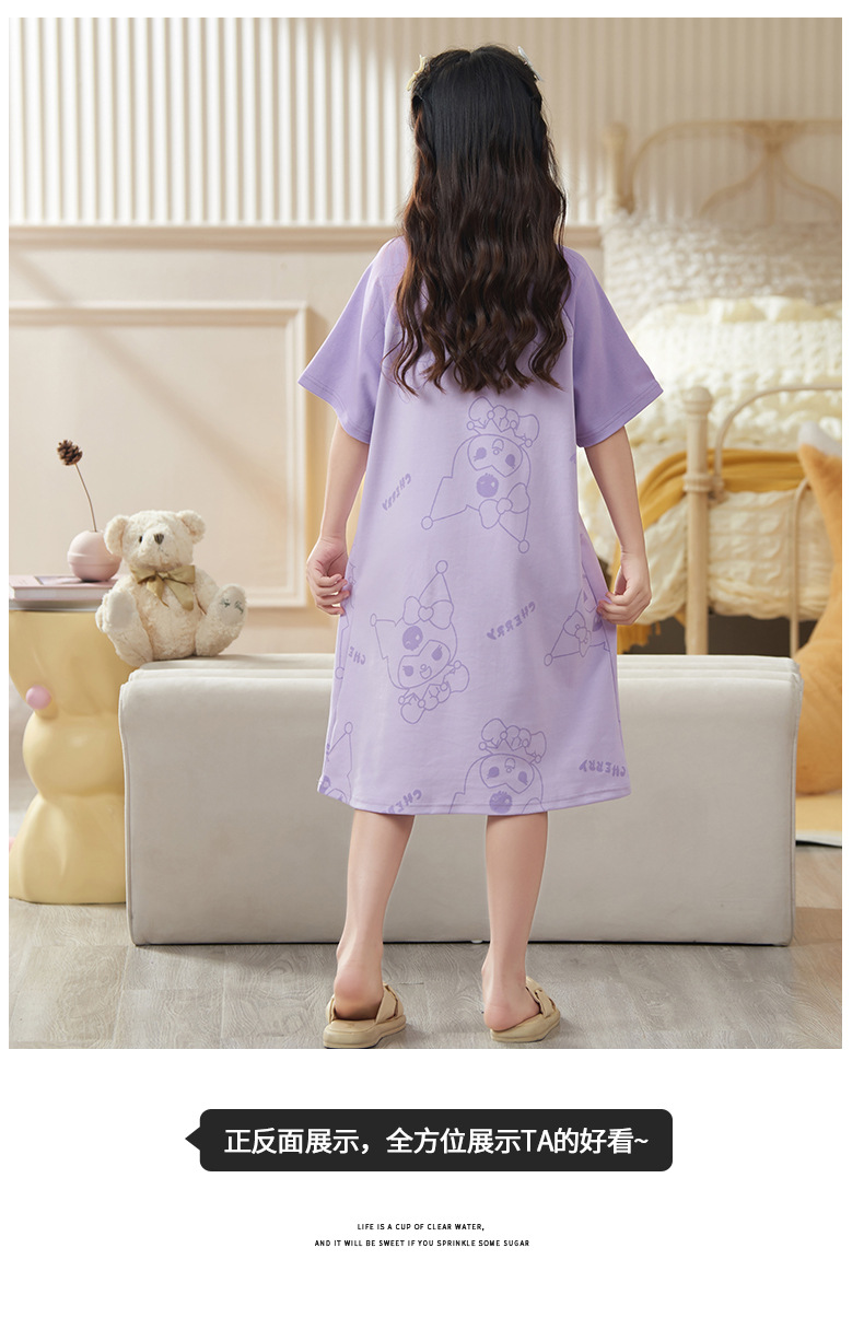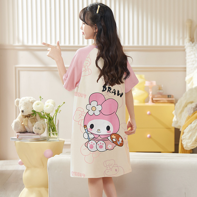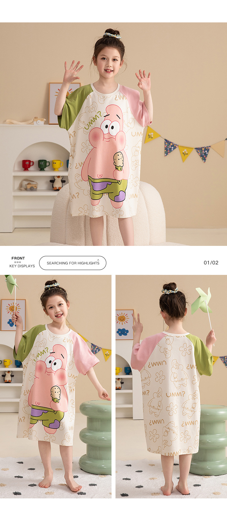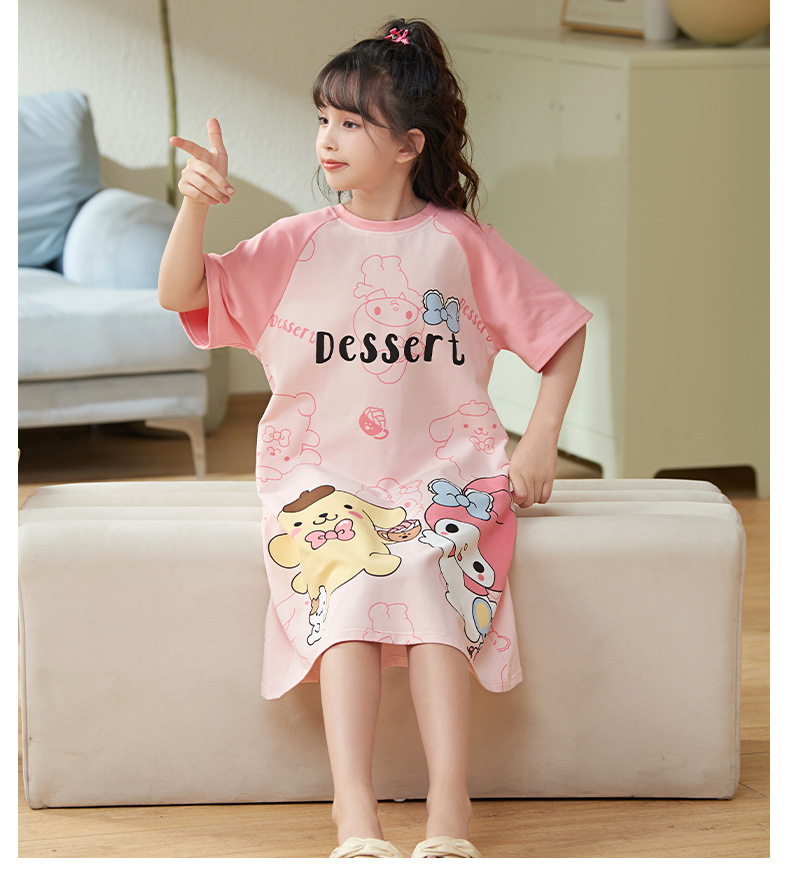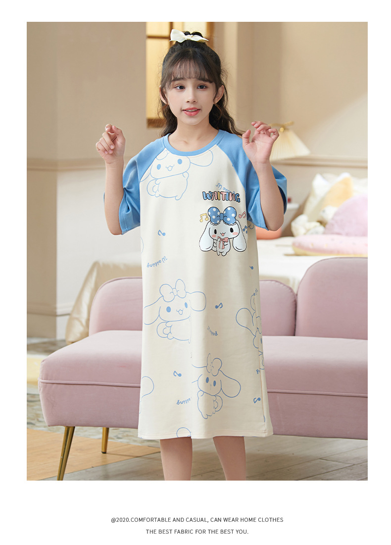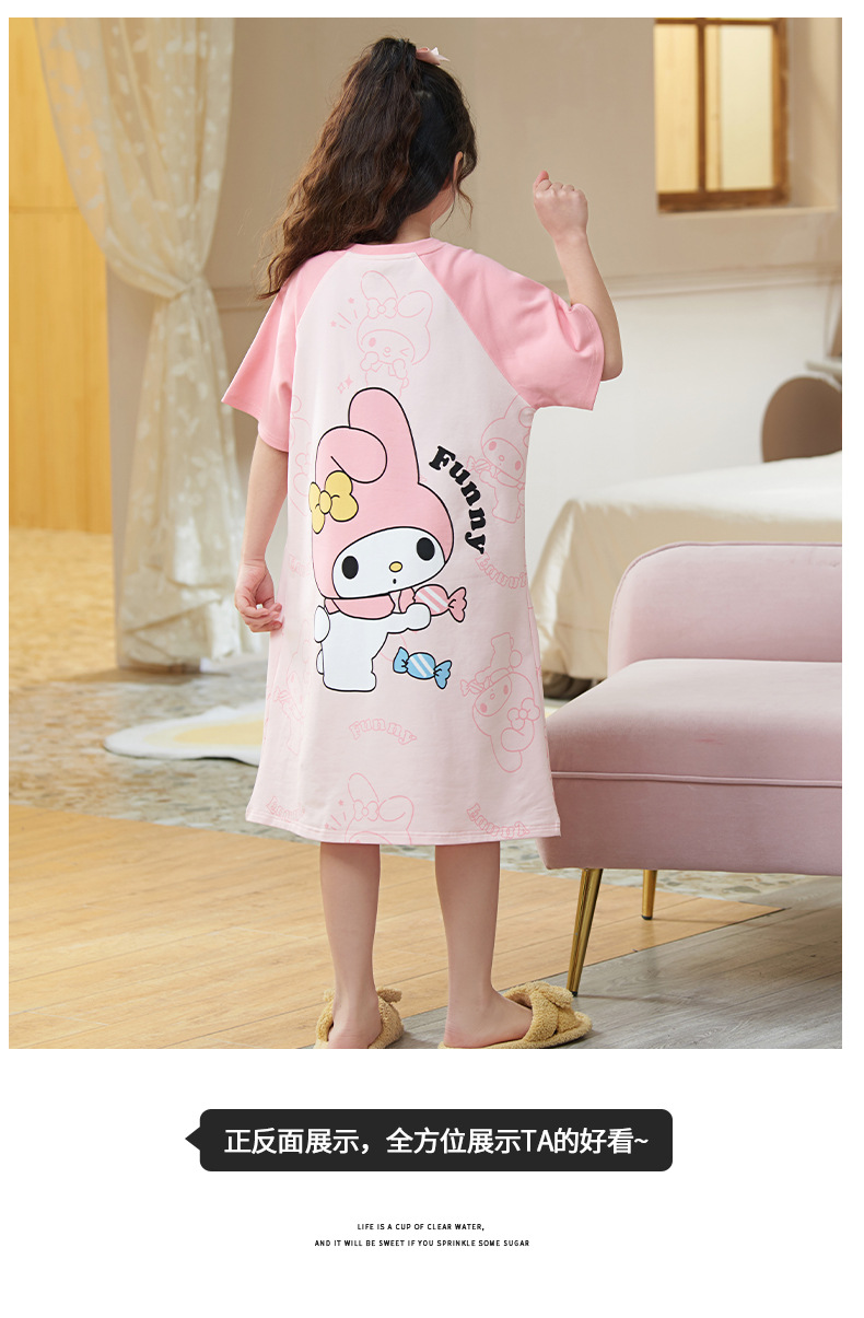 어린이 잠옷 2025 년 여름 새 순면 반소매 여아 잠옷 큰 어린이 어린 소녀의 원피스